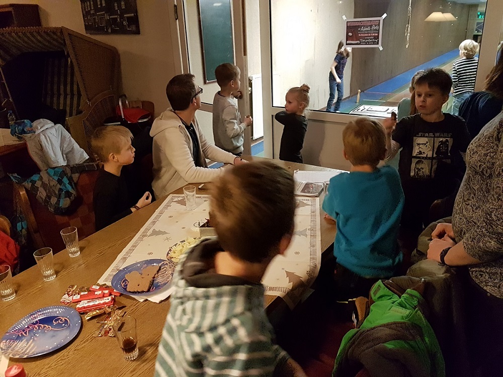 Zusammen mit den Betreuern, machten sich alle auf den Weg zum Kegeln nach Wirdum. Dort angekommen, bildeten die zwölf Kinder zwei Gruppen und konnten somit ihr Können unter Beweis stellen. Alle hatten sehr viel Spaß und am Ende wurden insgesamt 12 Sieger ermittelt. Anschließend konnten sich alle mit Pommes und Chicken Nuggets stärken. Zum Abschluss bekam jedes Kind ein kleines Geschenk überreicht. Die Kinder und Eltern überreichten den Betreuern auch jeweils ein Geschenk. Darüber waren die Betreuer sehr erfreut und möchten sich bei allen Eltern, sowie Kindern auch für die tolle Zusammenarbeit bedanken.