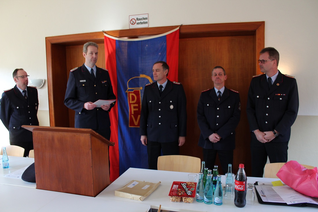 Reiner Willms überbrachte als Gemeindebrandmeister und stellvertretender Bürgermeister Grüße von Rat und Verwaltung. Stellvertretend für den Gemeindebrandmeister trug Willms den Bericht des Gemeindebrandmeisters vor. Ebenso berichtete der stellvertretende Gemeindebrandmeister von anstehenden Beschaffungen von Feuerwehrfahrzeugen und den geleisteten Einsätzen im vergangenen Jahr.