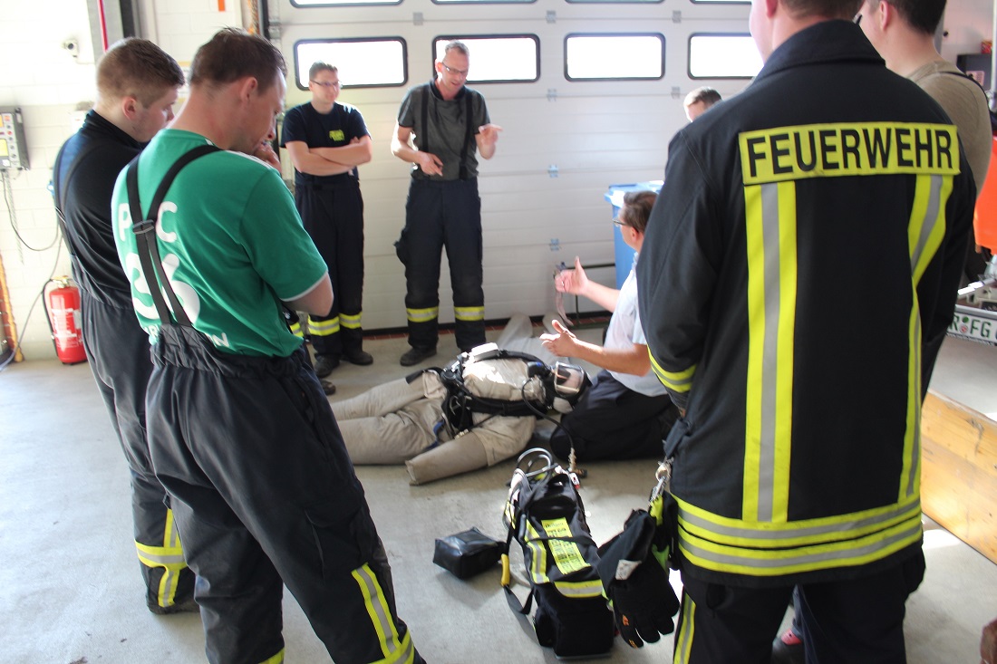 Die Teilnehmer wurden in drei Gruppen aufgeteilt. Es galt 4 Stationen zu durchlaufen. Vom Vorgehen bei einem Atemschutznotfall über die persönliche Schutzausrüstung, der Gerätewiederherstellung nach einem Einsatz bis zu verschiedenen Suchtechniken, all diese Dinge wurden dort für den Ernstfall trainiert.