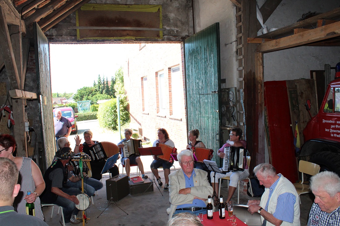 Im Anschluss wurden mit musikalischer Unterstützung Lieder angestimmt. Durch den Feuerwehrtraditionsverein Emden-Ostfriesland e.V. wurden Führungen durch die Ausstellungen angeboten. Nach dem gemeinsamen Grillen fand der Nachmittag einen gemütlichen Ausklang.