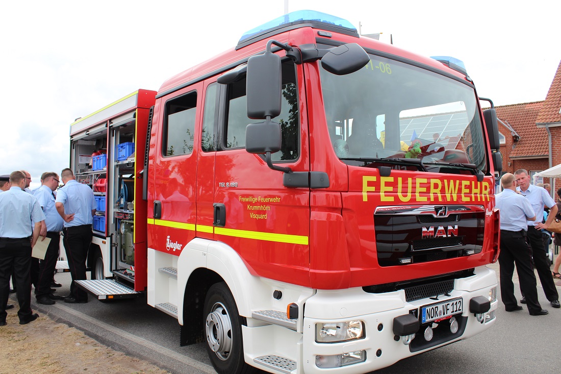 Nach der Delegiertenversammlung am Gemeindefeuerwehrtag in Greetsiel fand die Übergabe des neuen TSF-W (Tragkraftspritzenfahrzeug mit Wasser) statt.
