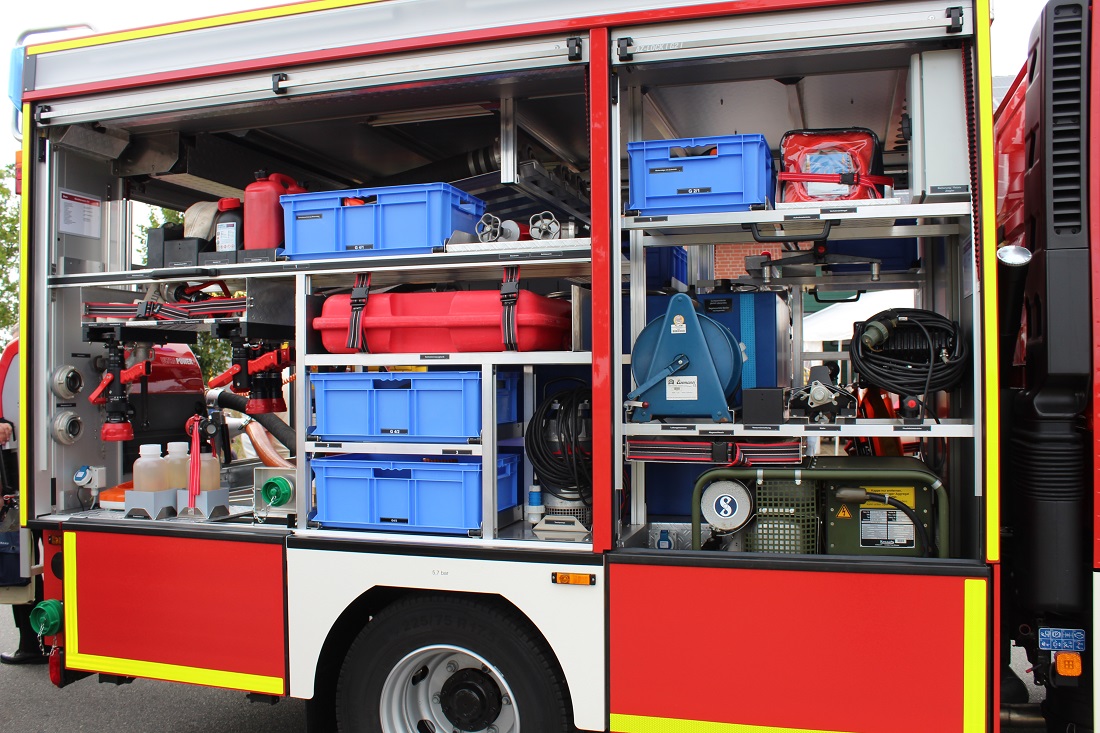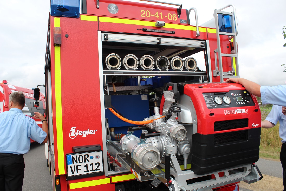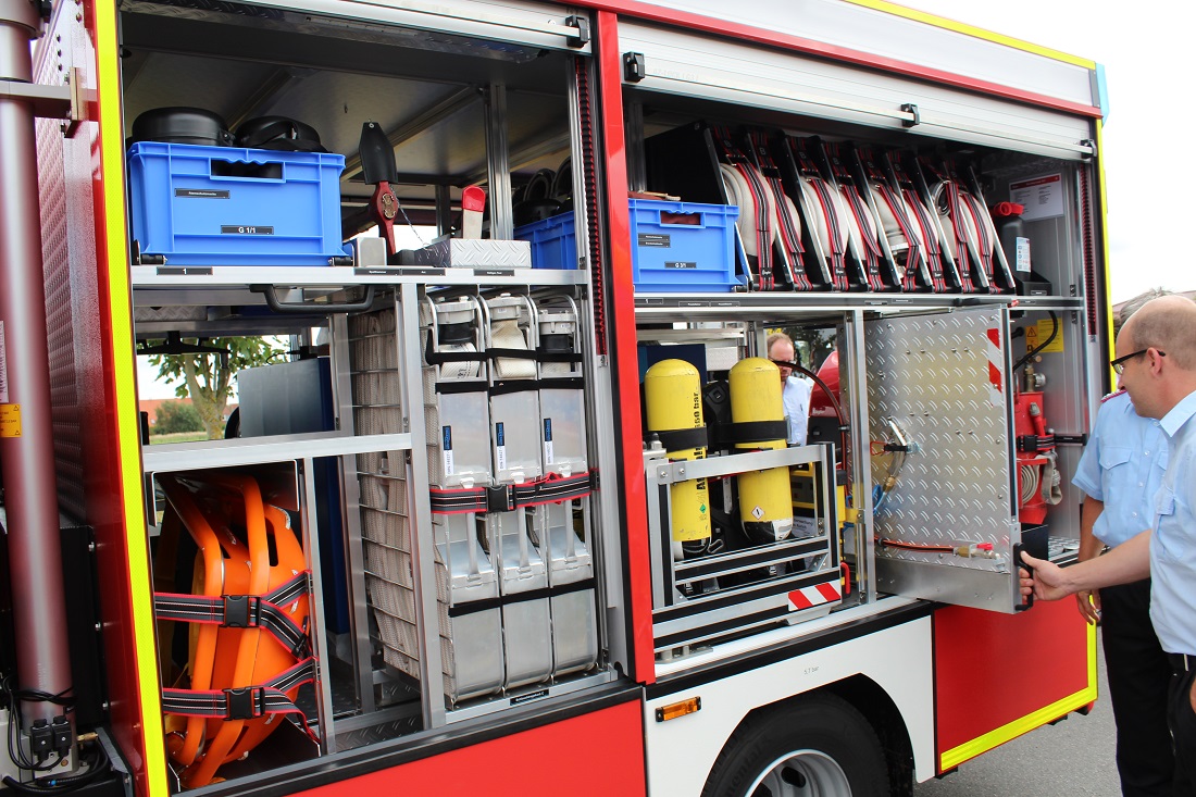 Gemeindebrandmeister Joachim Harberts erwähnte, dass das Fahrzeug speziell für die Abwicklung von Sturmeinsätzen ausgerüstet ist. So sind auf diesem Tragkraftspritzenfahrzeug mit Wasser beispielsweise ein Hochentaster und mehrere Motorkettensägen verlastet.
