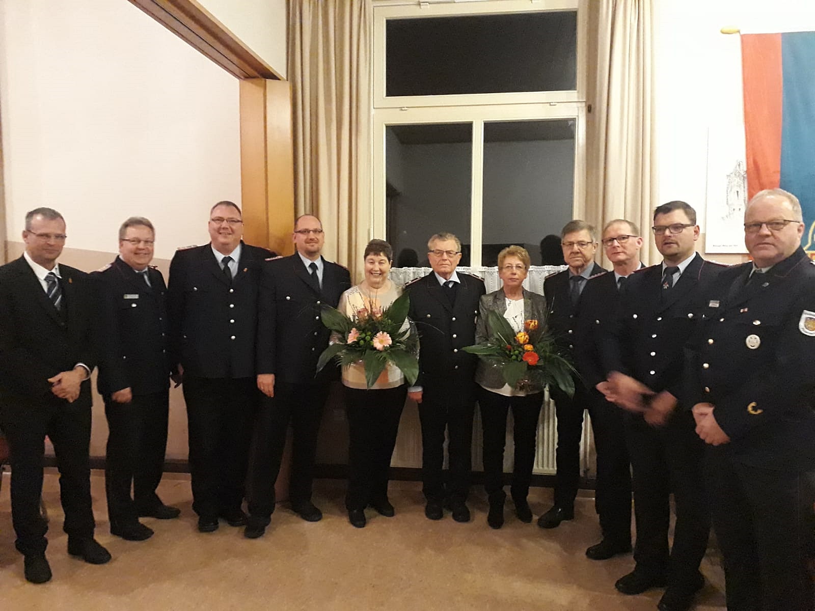 Die Geehrten erhielten neben den Urkunden je einen Glaspokal, sowie Blumensträuße für die ebenfalls anwesenden Ehefrauen von den Kameraden und Kameradinnen der Feuerwehr Krummhörn-Ost.
