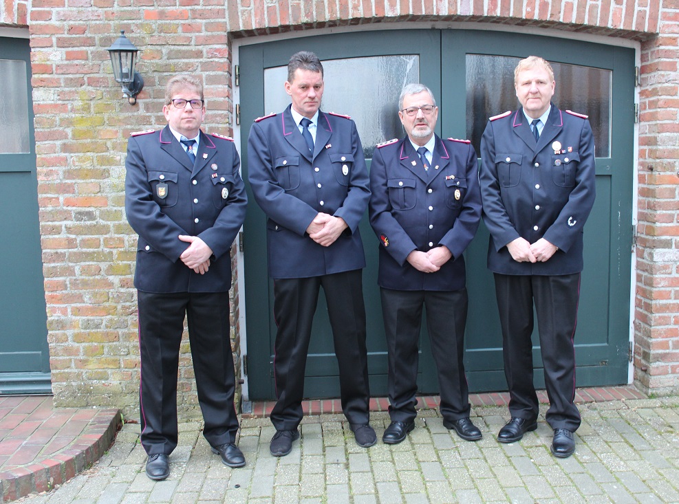 Arnold Tjarks und Albrecht de Vries bekamen das niedersächsische Feuerwehr-Ehrenzeichen für 40 Jahre Dienstzugehörigkeit durch Kreisbrandmeister Gerd Diekena verliehen. Arnold Tjarks ist aktuell als stellvertretender Jugendfeuerwehrwart eingesetzt. Albrecht de Vries war unter anderem 33 Jahre lang als Ortsbrandmeister eingesetzt. De Vries ist federführend in der Motorsägenausbildung auf Gemeindeebene aktiv. Tjarks und de Vries waren beide bei diversen Katastrophenschutzeinsätzen im Einsatz, wie etwa bei der Schneekatastrophe in Norddeutschland.