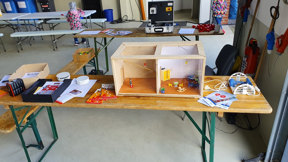 Für die kleinen Besucher gab es einen Stand der Brandschutzerzieher. Dort wurde unter anderem erläutert, wie wichtig Rauchmelder sind. Aber auch das Absetzen eines Notrufes wurde dort gezeigt.