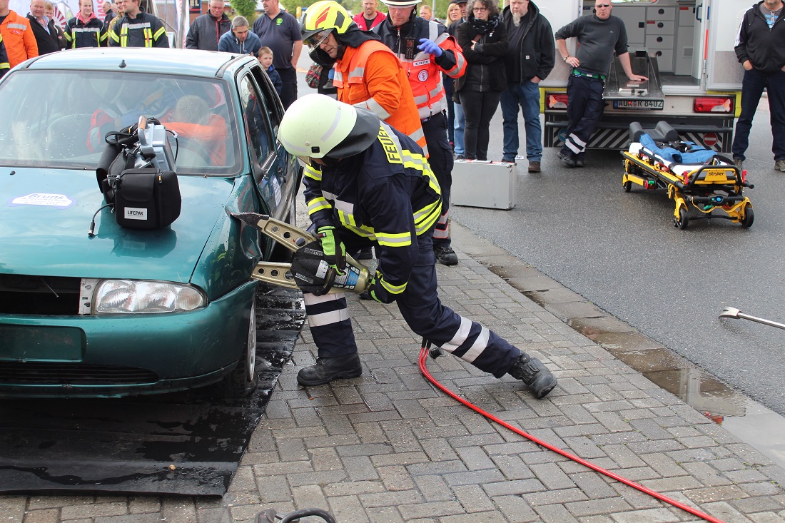 Es wurden zum Beispiel Fettbrände simuliert, die dann mit einer kleinen Menge Wasser abgelöscht wurden. Unterschiedlichste Verkehrsunfallübungen wurden vorgeführt.