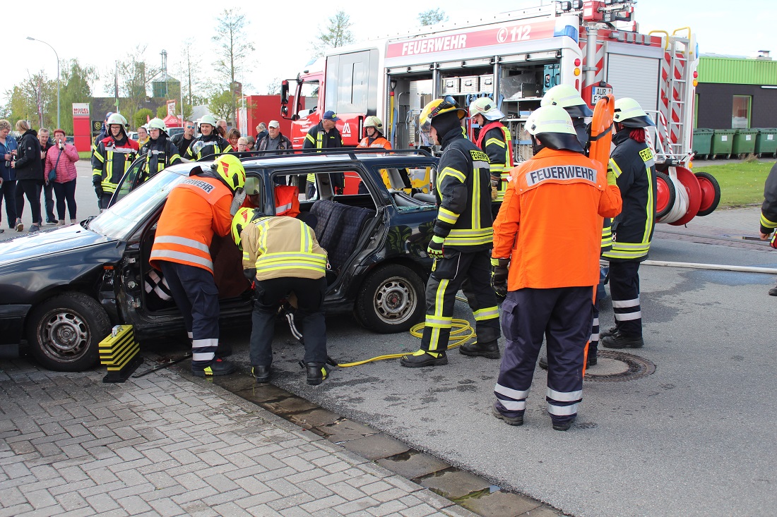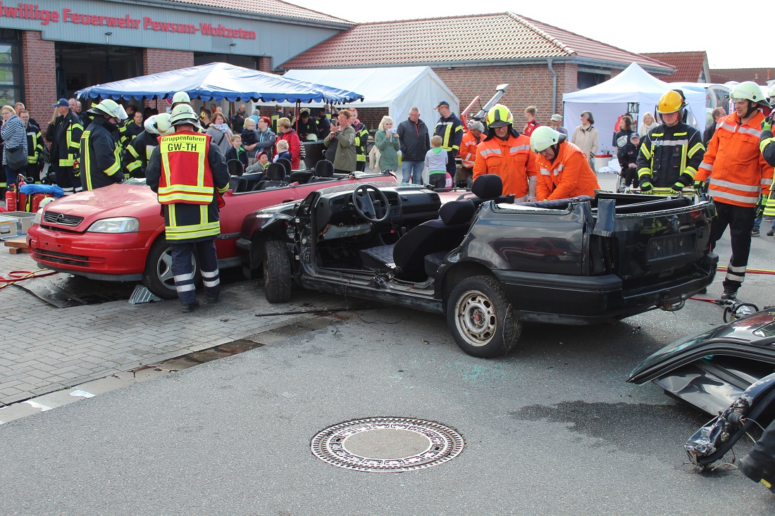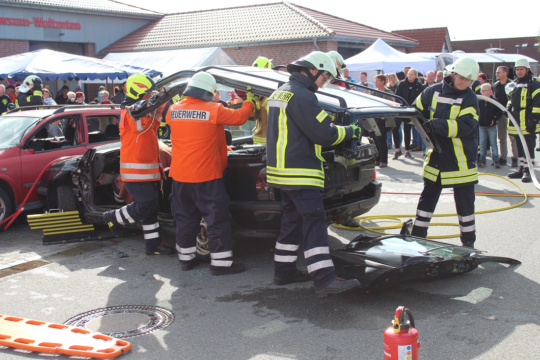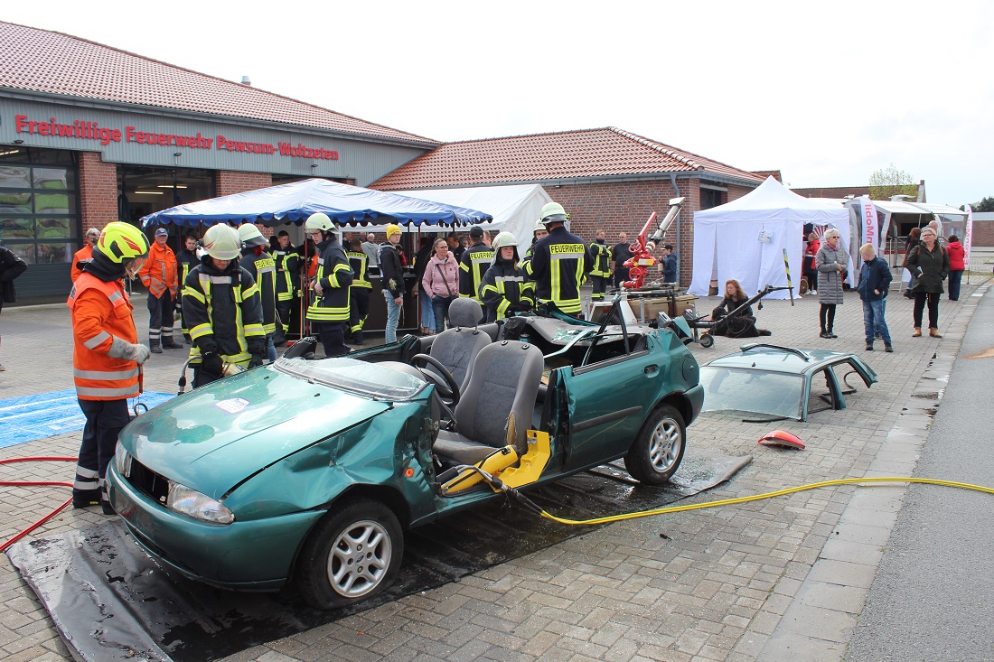 Am 27. und 28. April fand die Gewerbeschau im Pewsumer Gewerbegebiet statt. Bei der Feuerwehr Pewsum-Woltzeten gab es für die Besucher einiges zu sehen. Unter dem Motto "Feuerwehr zum Anfassen" durften auch die Besucher mit den feuerwehrtechnischen Geräten arbeiten.