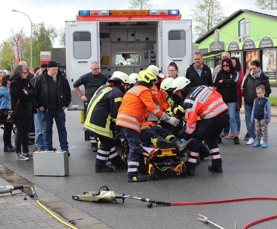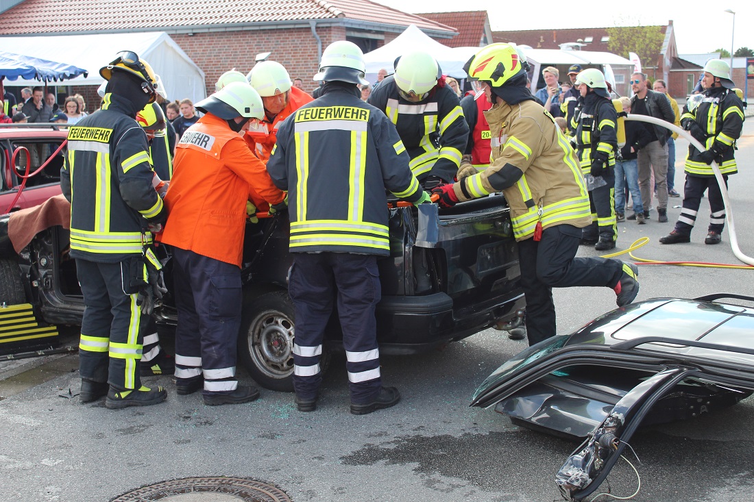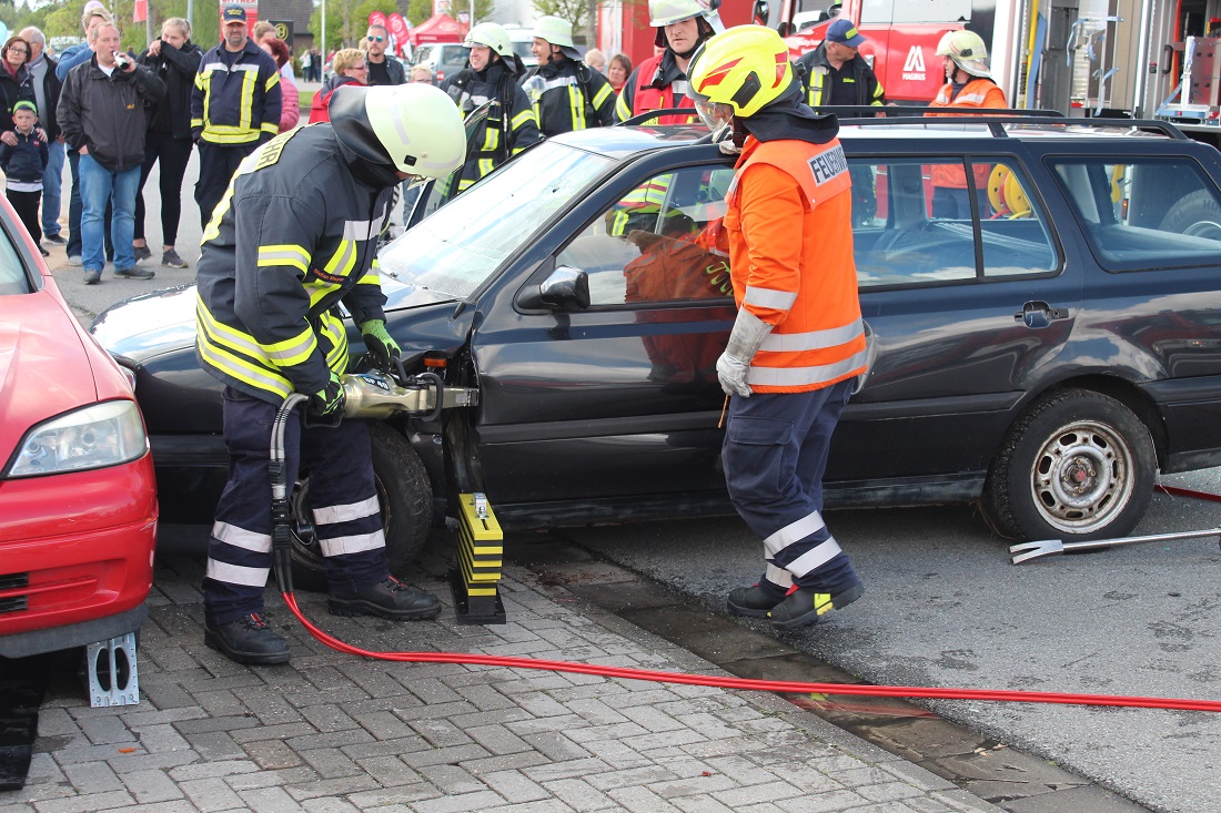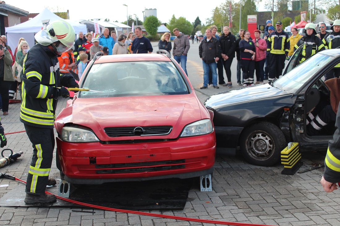 Am 27. und 28. April fand die Gewerbeschau im Pewsumer Gewerbegebiet statt. Bei der Feuerwehr Pewsum-Woltzeten gab es für die Besucher einiges zu sehen. Unter dem Motto "Feuerwehr zum Anfassen" durften auch die Besucher mit den feuerwehrtechnischen Geräten arbeiten.