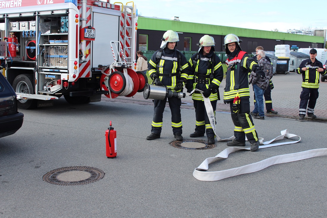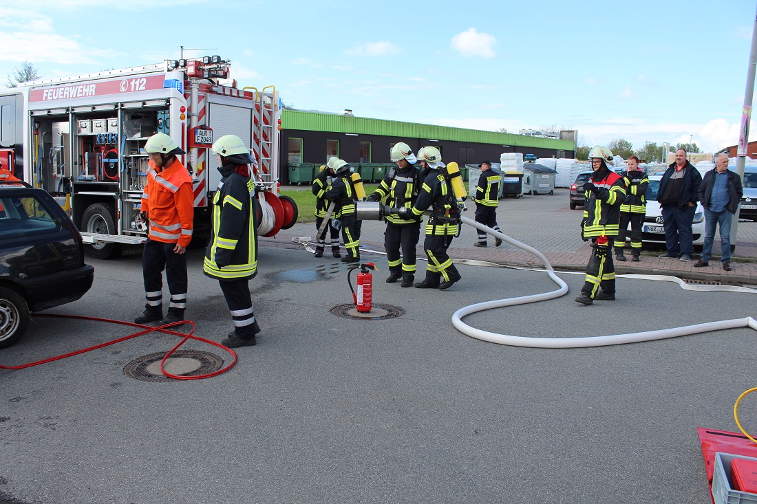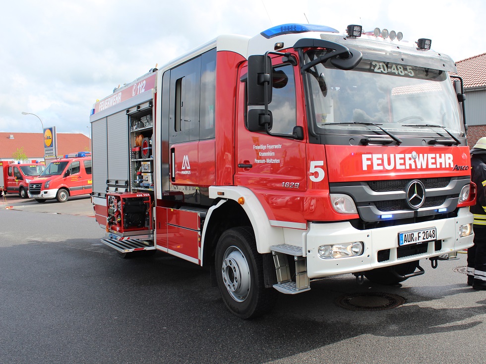 Am Sonntag war dann die gesamte Gemeindefeuerwehr Krummhörn mit den Einsatzfahrzeugen im Gewerbegebiet vertreten. Die Fahrzeuge konnten vor Ort besichtigt werden.