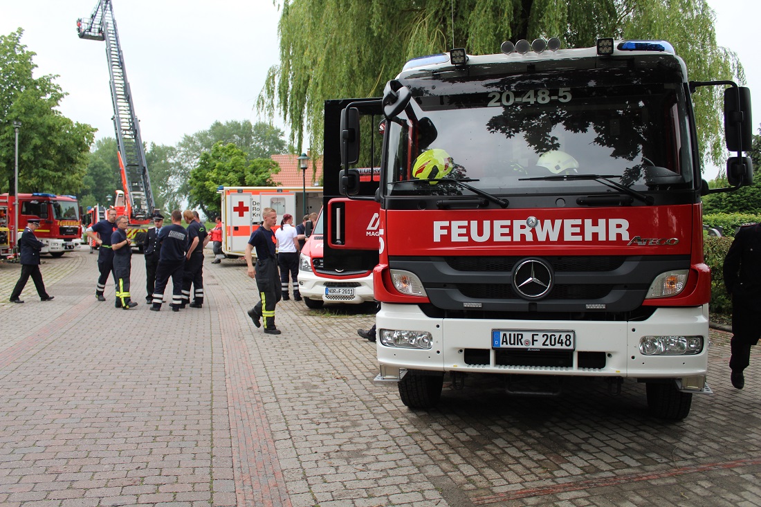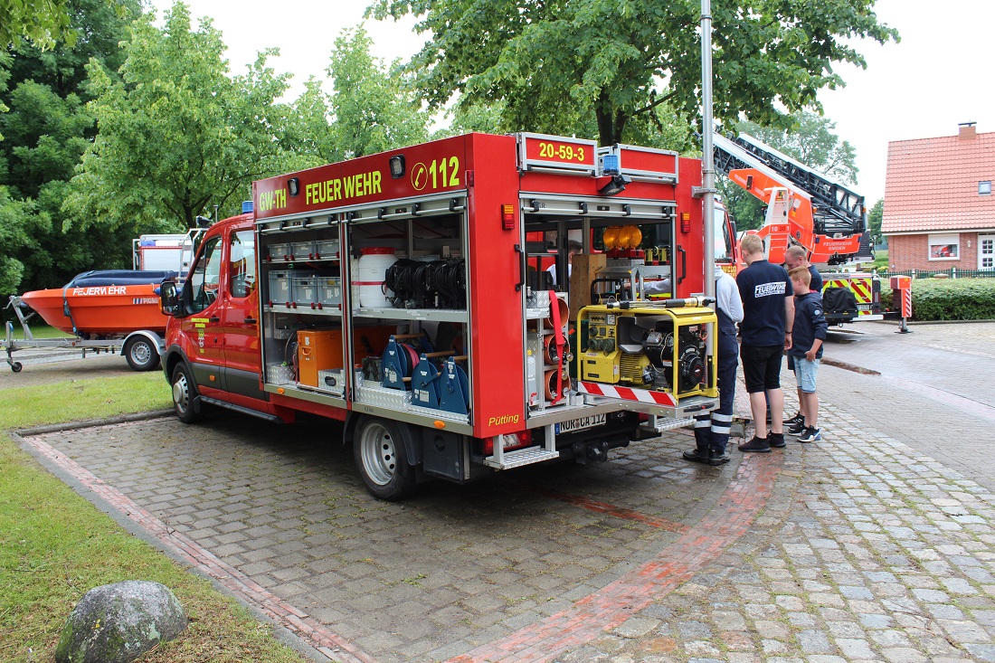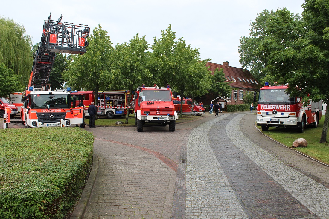 Am 45. Gemeindefeuerwehrtag in Loquard standen mehrere Fahrzeuge der Gemeindefeuerwehr Krummhörn und die Drehleiter mit Korb der Feuerwehr Emden zur Besichtigung bereit. Für das leibliche Wohl sorgte die Feuerwehr Krummhörn-Süd mit einem Getränkestand und ein Imbisswagen der Fleischerei Arends.