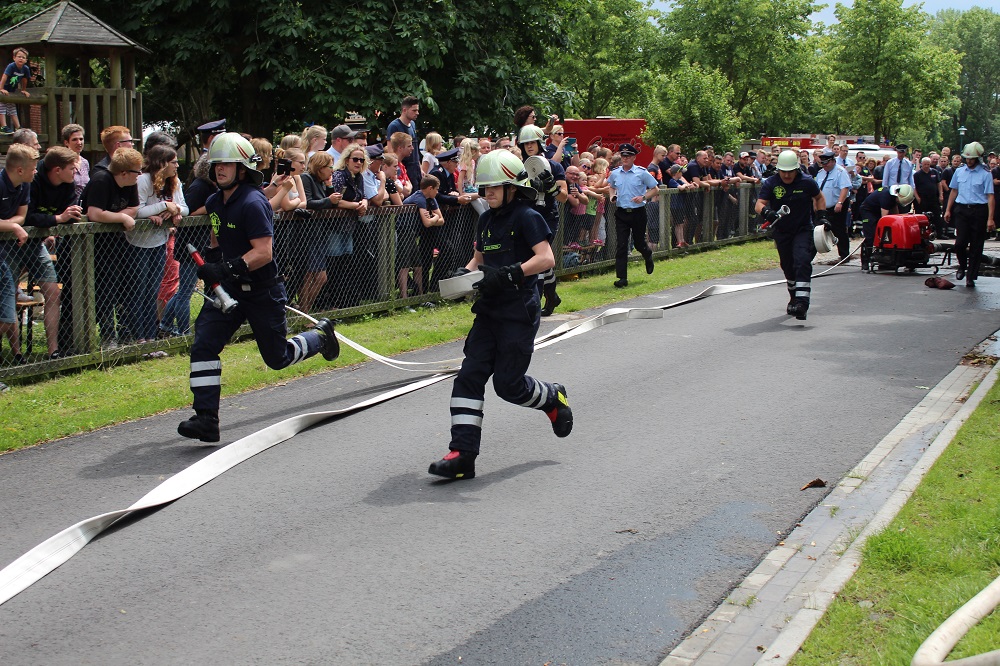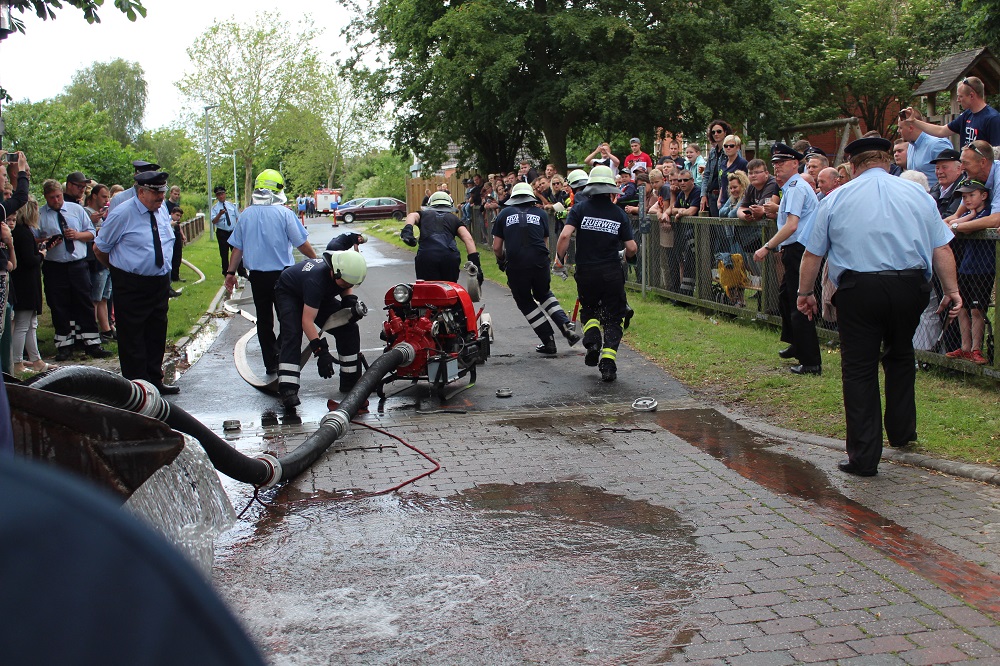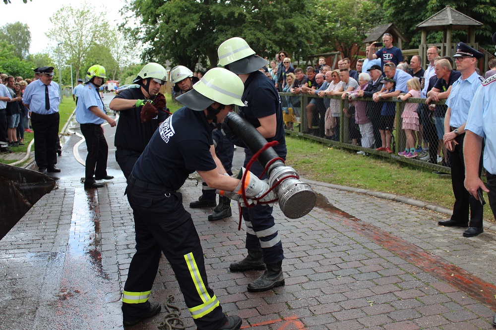 Am zweiten Tag des Gemeindefeuerwehrtages fand in Loquard der Schnelligkeitswettkampf statt. Viele Zuschauer feuerten die angetretenen Gruppen an.