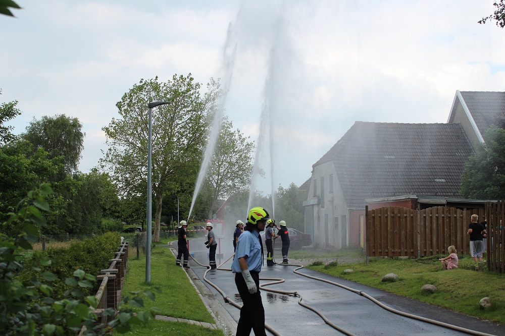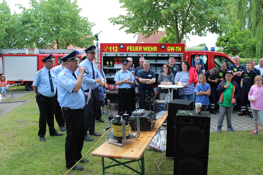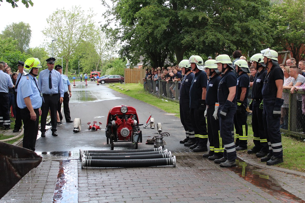 Bei der anschließenden Siegerehrung wurde zudem eine Beförderung von der gestrigen Delegiertenversammlung nachgeholt. Der stellvertretende Ortsbrandmeister der Feuerwehr Krummhörn-Nord Wilm-Hendrik Schulz wurde durch den Gemeindebrandmeister Joachim Harberts zum Oberlöschmeister befördert.