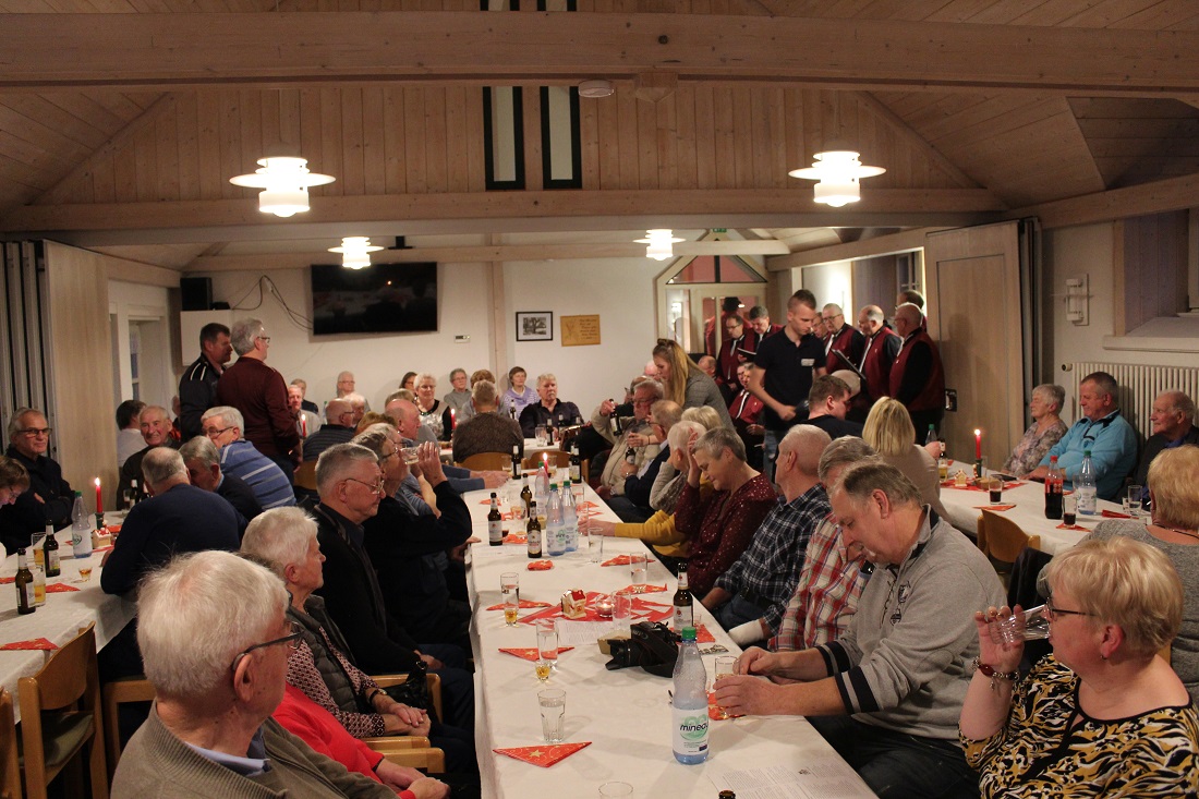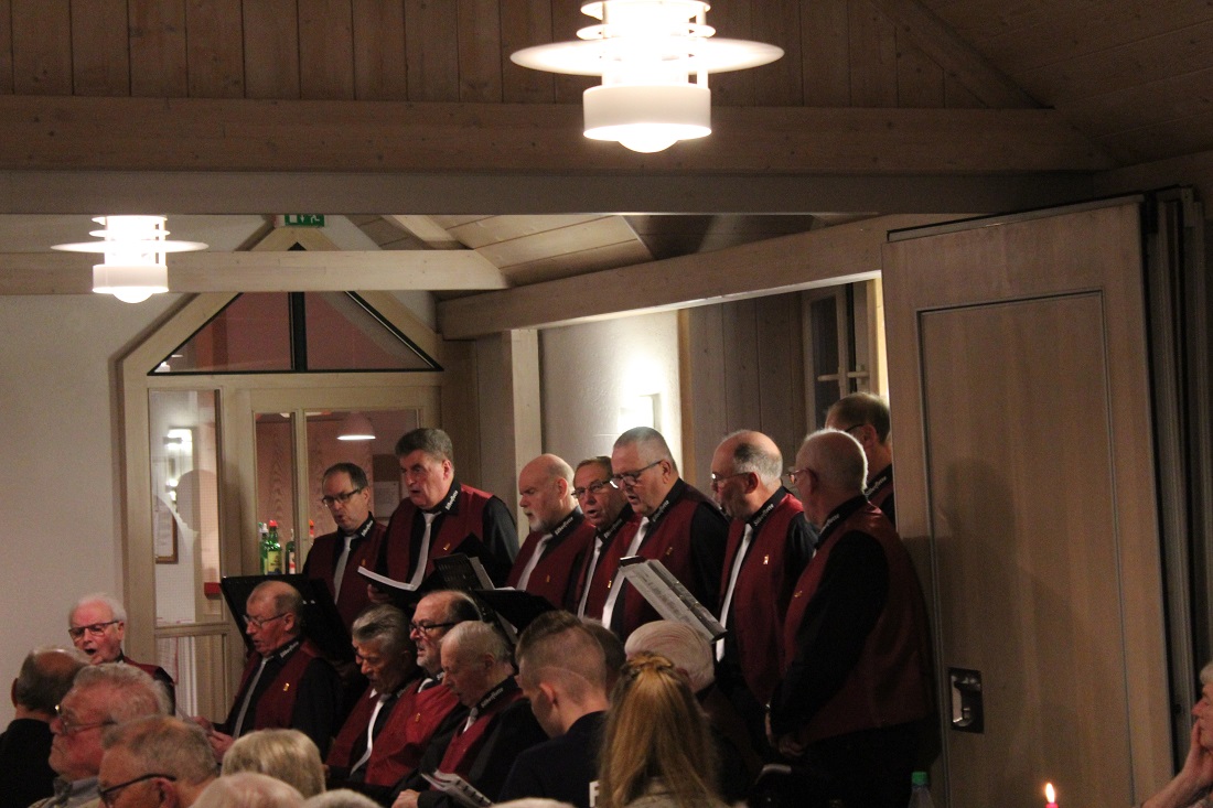 Bei Tee und Kuchen saßen rund 100 Personen in gemütlicher Runde beisammen und stimmten weihnachtliche Lieder mit der Silberflotte (Chor) an.
