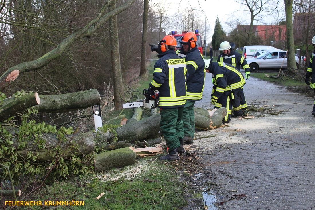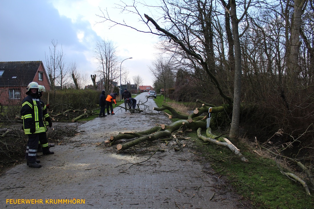 Die Feuerwehr Krummhörn-Nord musste Sonntagabend um 18:15 Uhr in die Okko Tom Brook Straße in Greetsiel ausrücken. Dort lag ein Baum auf der Straße, den die Einsatzkräfte mit Hilfe einer Motorkettensäge beseitigten.