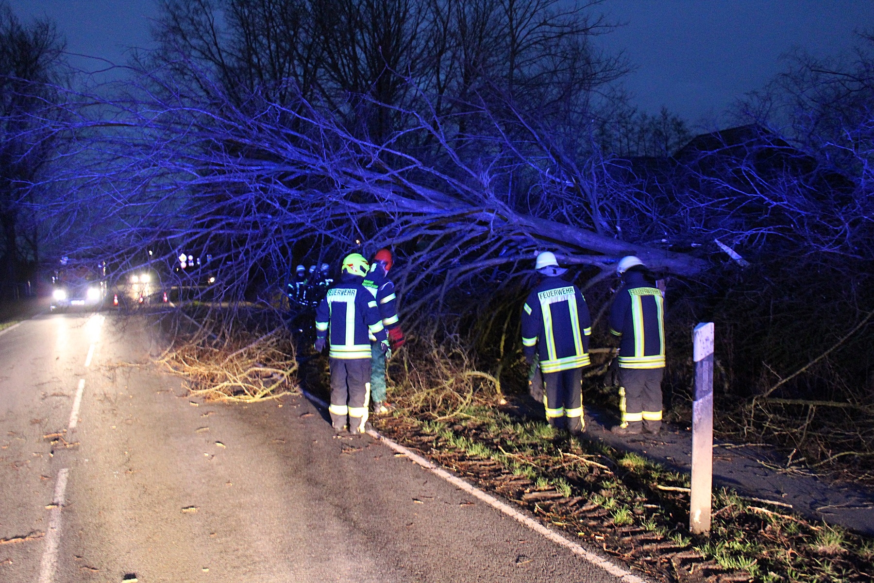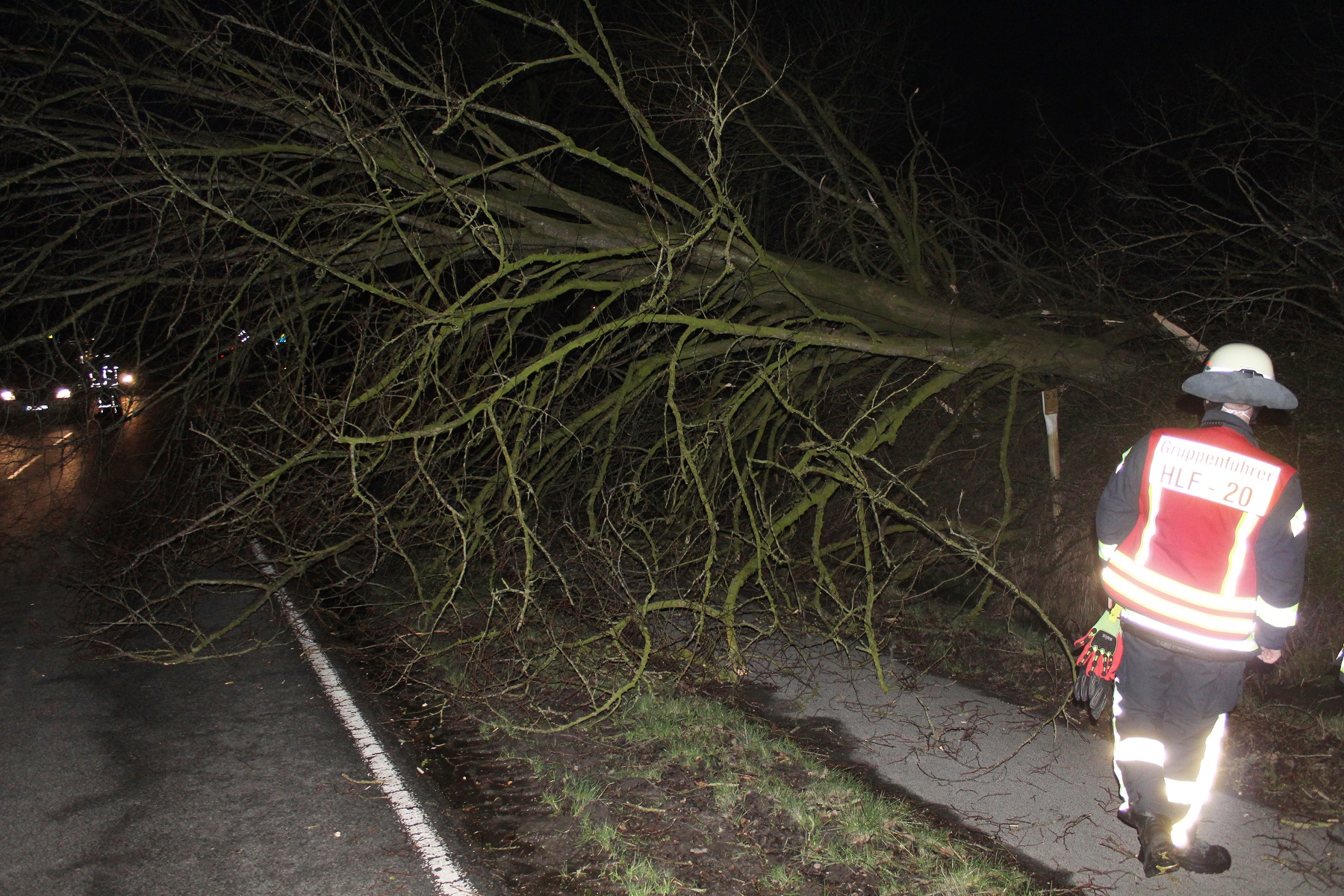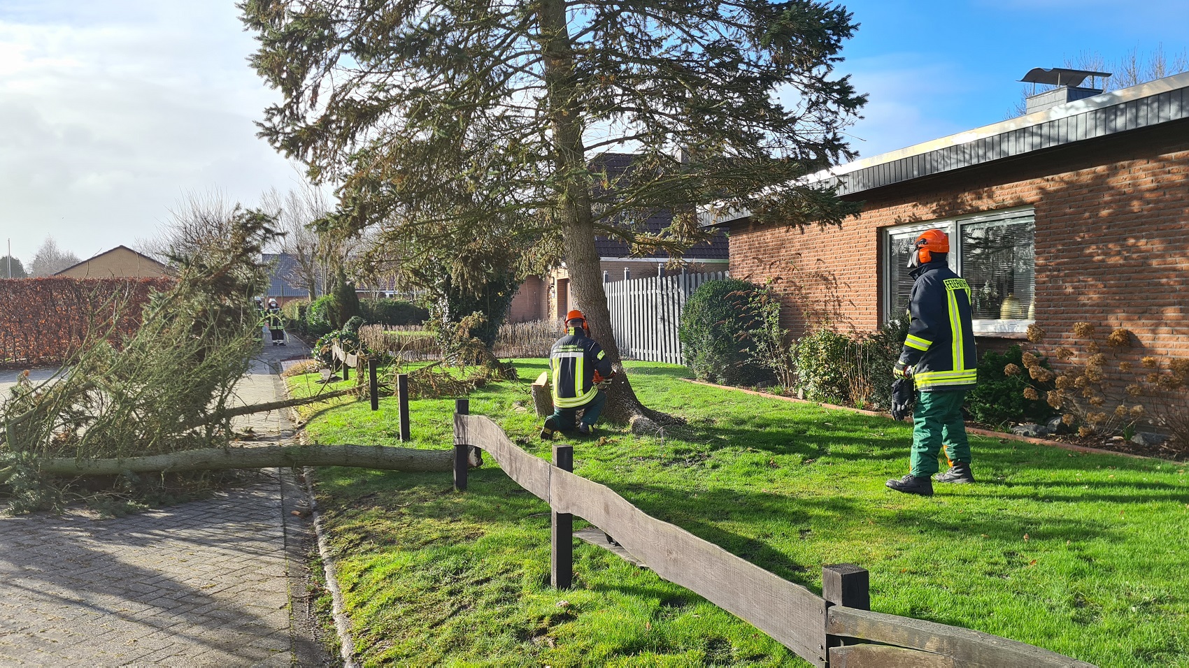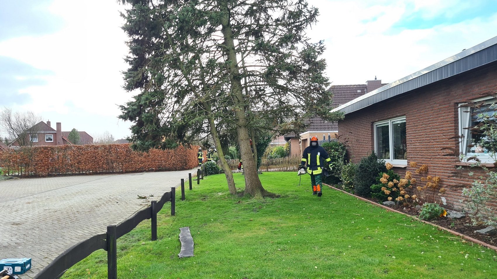 Gegen 09:50 Uhr ging es für die Ortsfeuerwehr Krummhörn-Mitte in den Pewsumer Gerhard-De-Buhr-Ring. Dort drohte eine Baumgruppe auf Grund des Sturms und des stark aufgeweichten Bodens umzustürzen. Die Baumgruppe ist von den Einsatzkräften kontrolliert zu Boden gebracht und die Gefahrenstelle dadurch beseitigt worden.