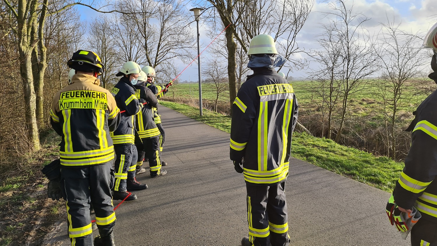 Eine abgerissene Telefonleitung, die über der Straße Zur Hohen Plate hing, hat am Nachmittag die Feuerwehr Krummhörn-Ost auf den Plan gerufen. Die Einsatzkräfte sicherten die Leitung und beseitigten somit die Gefährdung.