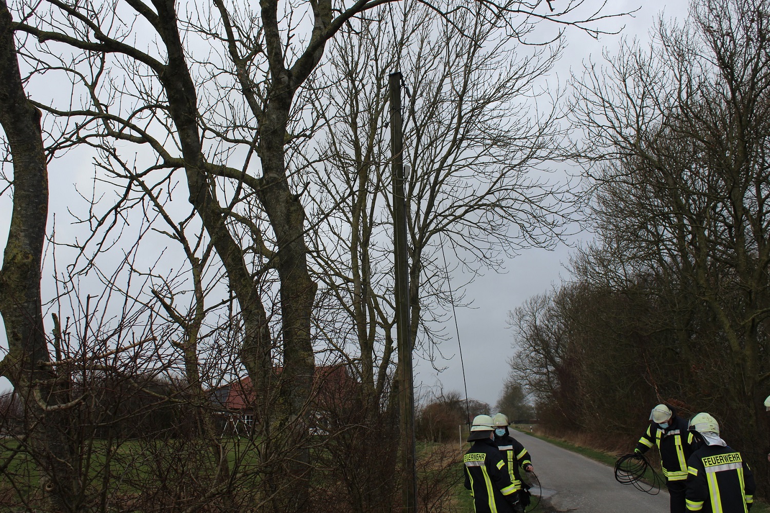 Ein Ast hing in einer Telefonleitung. Der Ast konnte mit wenigen Handgriffen durch die OF Krummhörn-West beseitigt werden.