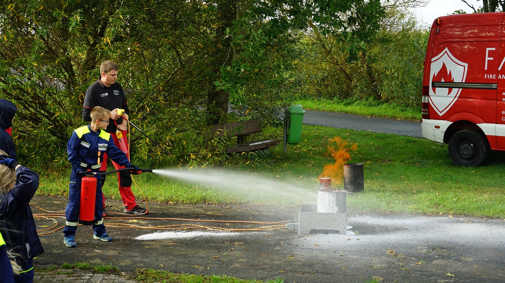 Ein weiteres besonderes Highlight: Die Mitglieder der Kinderfeuerwehr durften alle mit einem Feuerlöscher einen simulierten Brand bekämpfen.