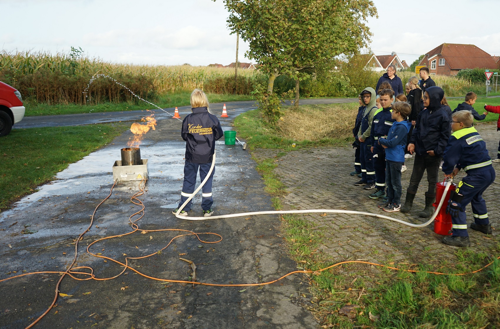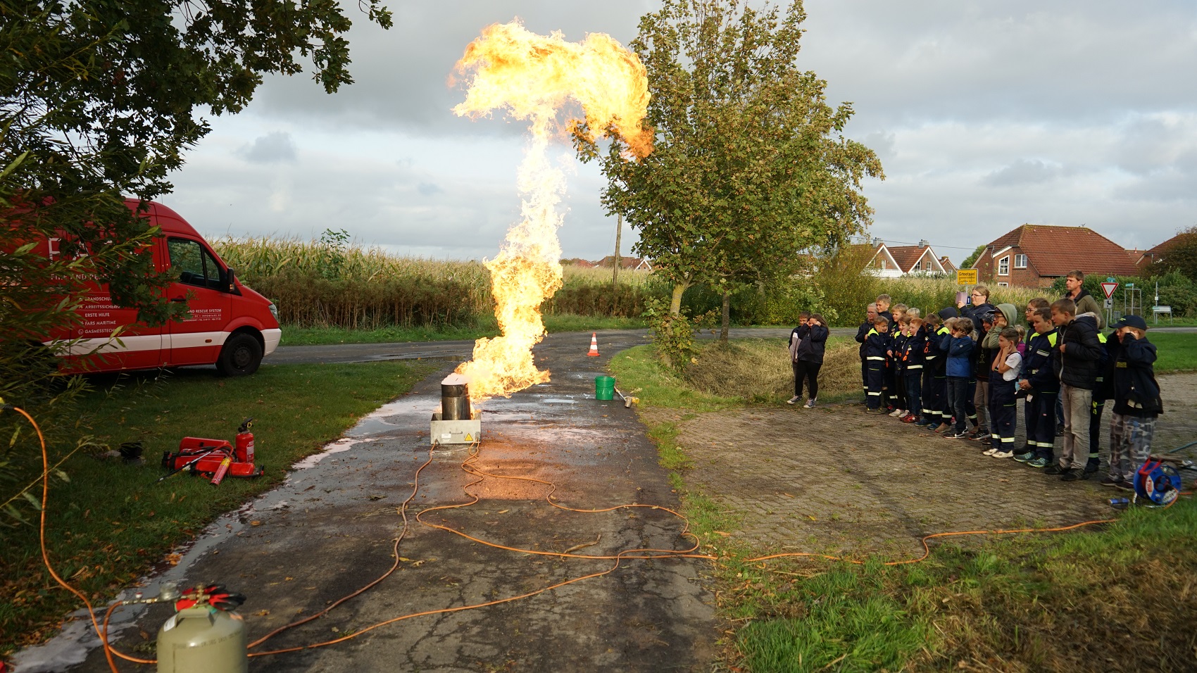 Auch das richtige Verhalten bei einem Fettbrand ist genau erklärt worden. Warum man diesen niemals mit Wasser löschen sollte, sahen sich die Nachwuchsbrandschützer aus sicherer Entfernung an.
