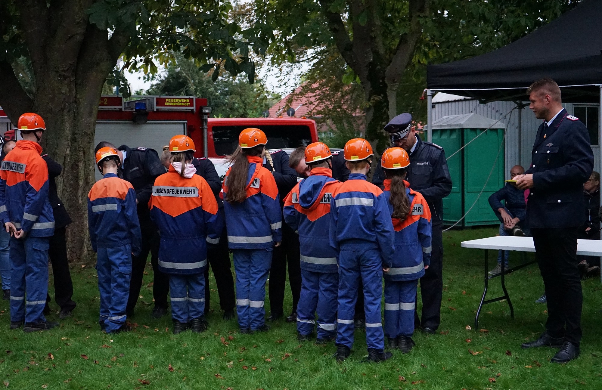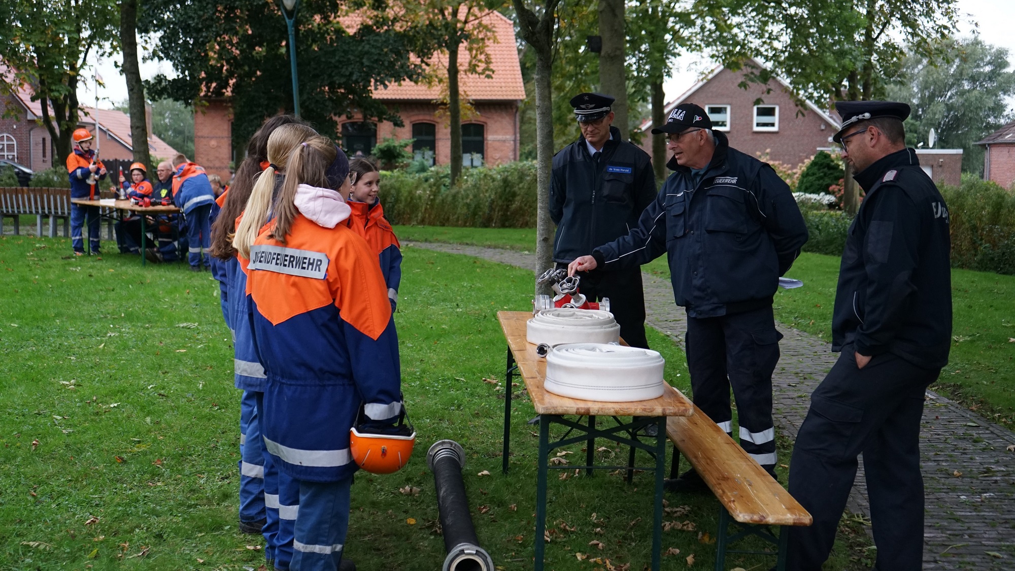 Die Nachwuchskräfte der Krummhörner Feuerwehr haben alle die Abnahme erfolgreich gemeistert und bekamen die Jugendflamme der Stufe 1 verliehen.