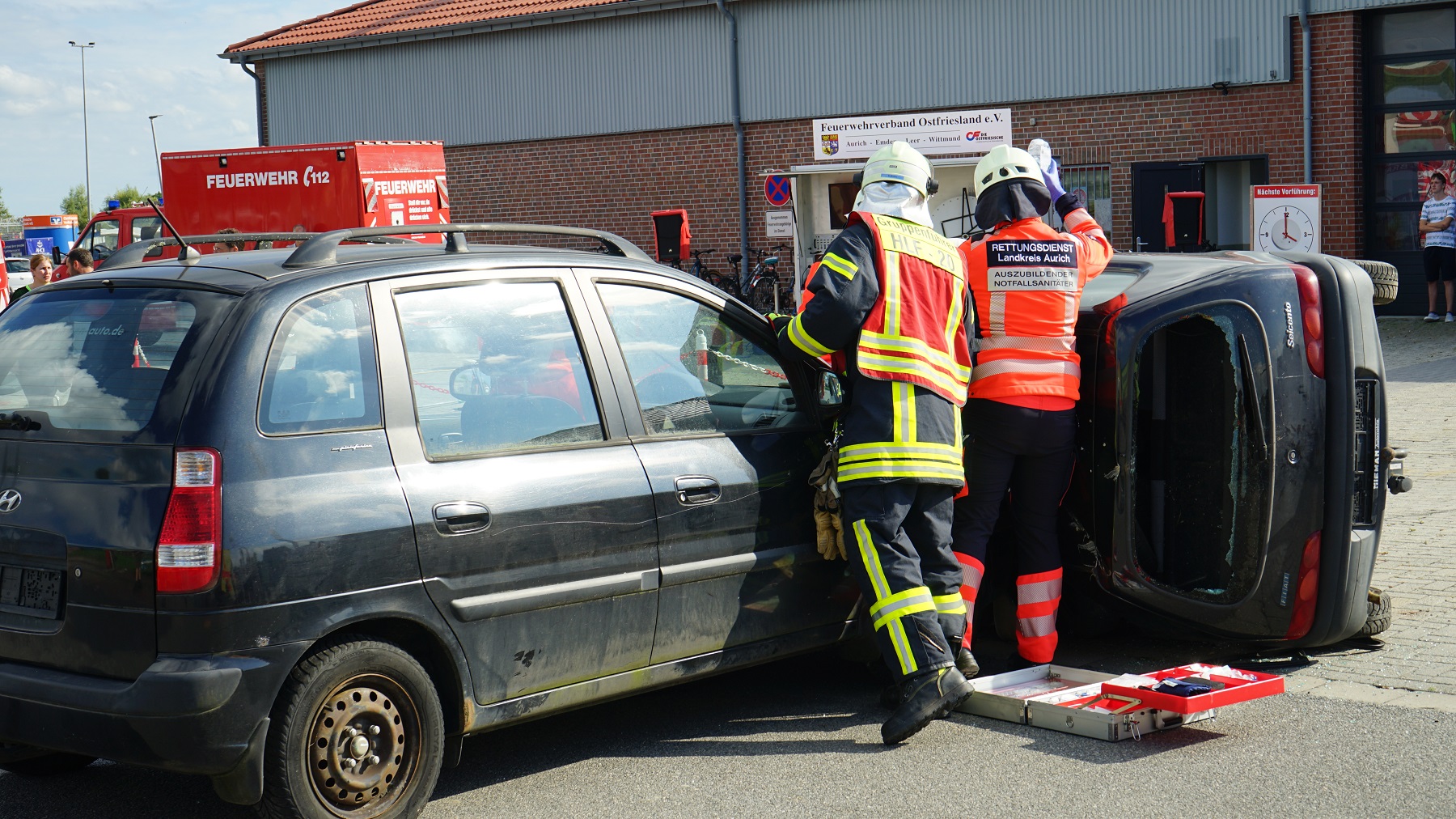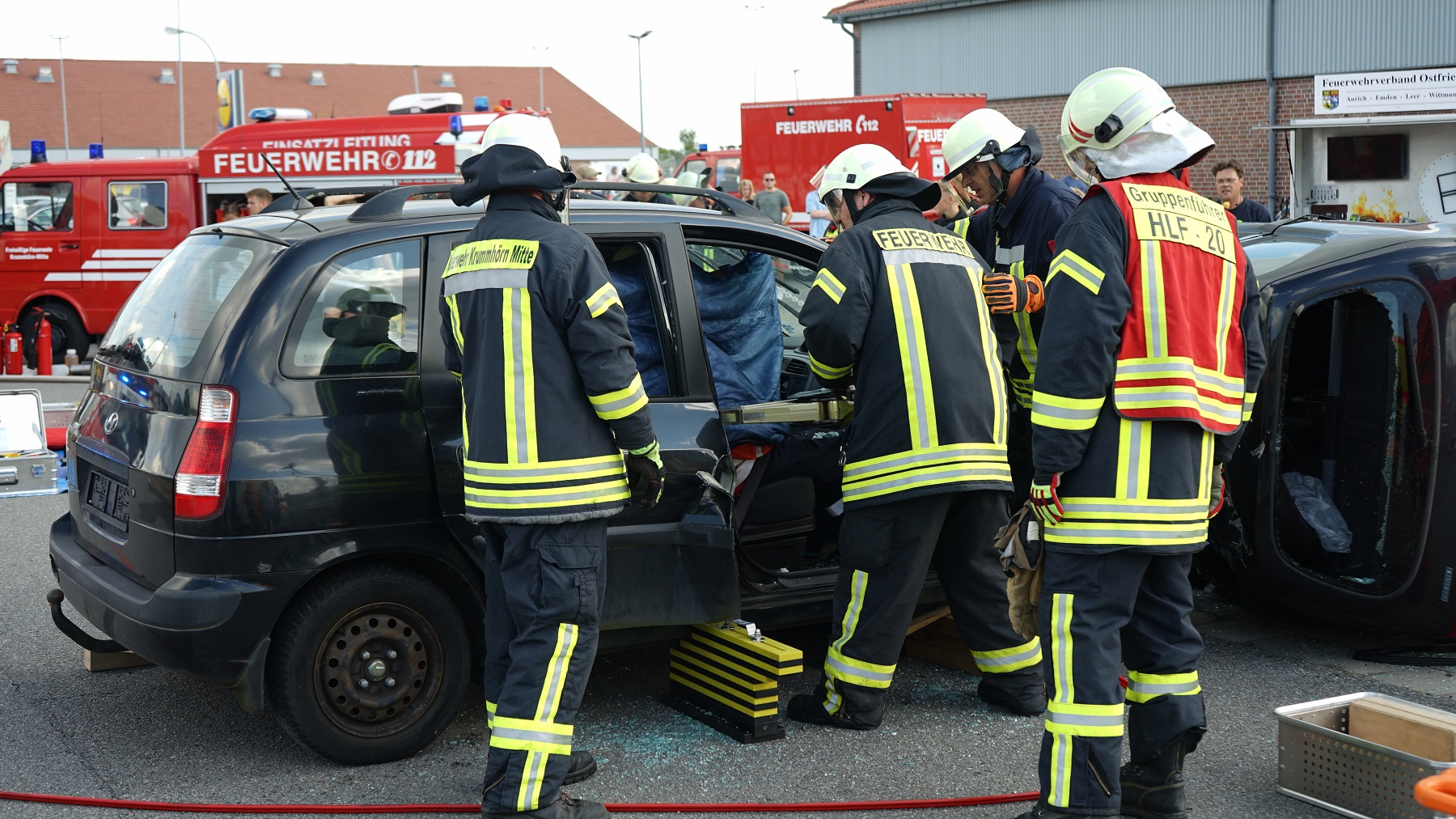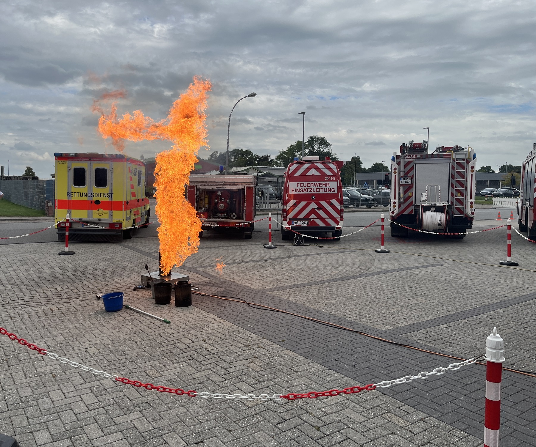 Zudem präsentierte die Feuerwehr in enger Zusammenarbeit mit dem Rettungsdienst des Landkreises Aurich die Abarbeitung verschiedenster Einsatzübungen. Außerdem sind Fettbrände oder der Zerknall von Sprühdosen vorgeführt worden.