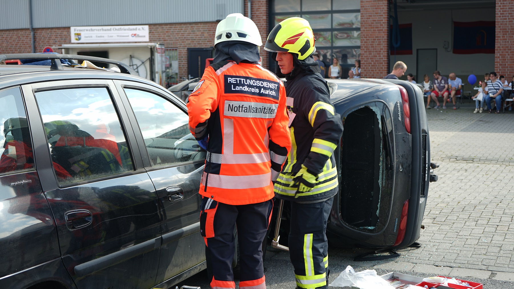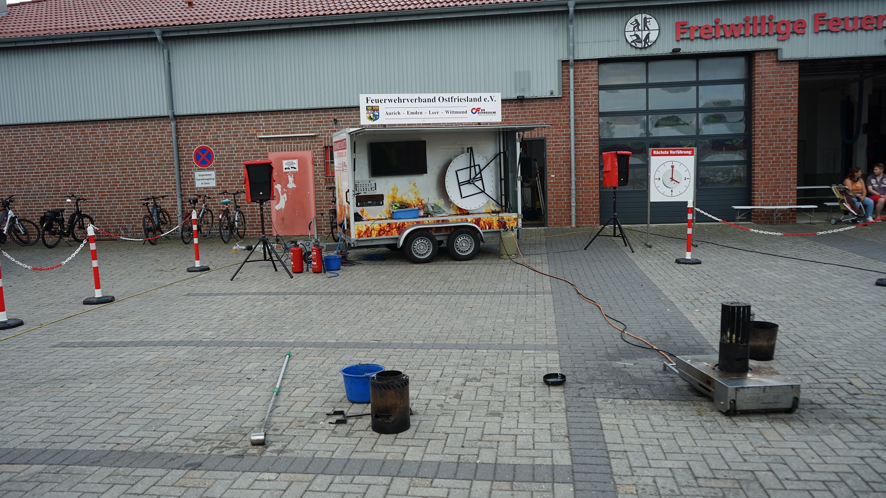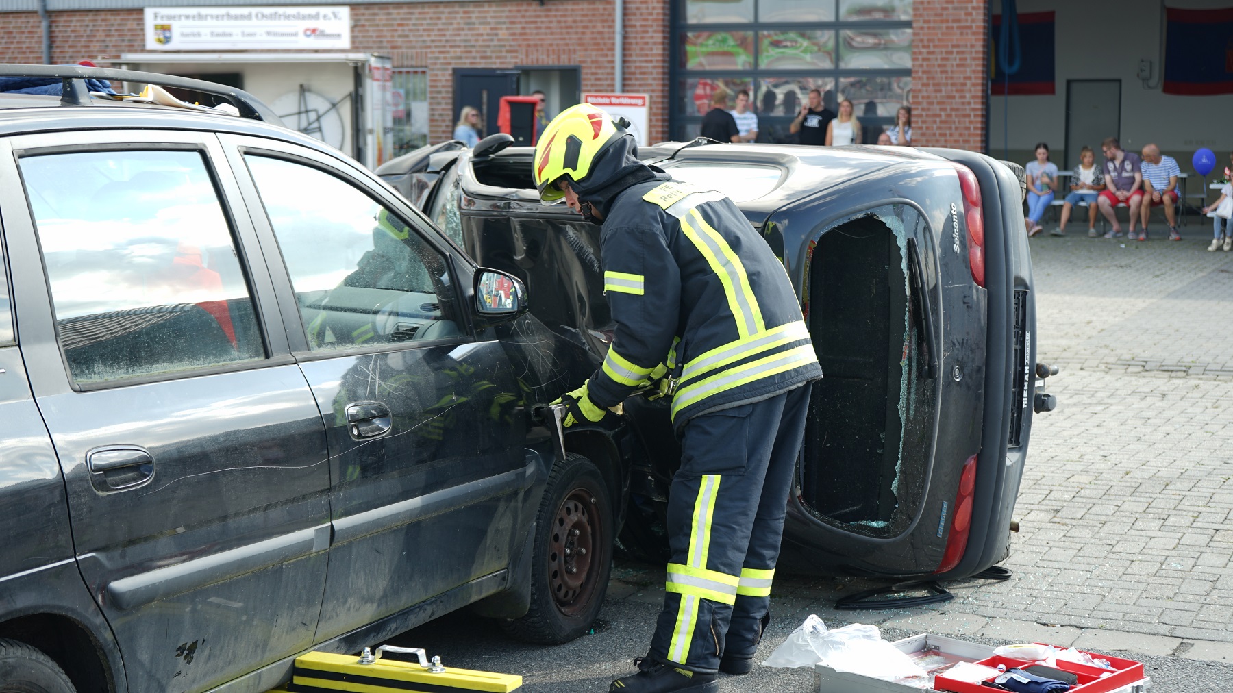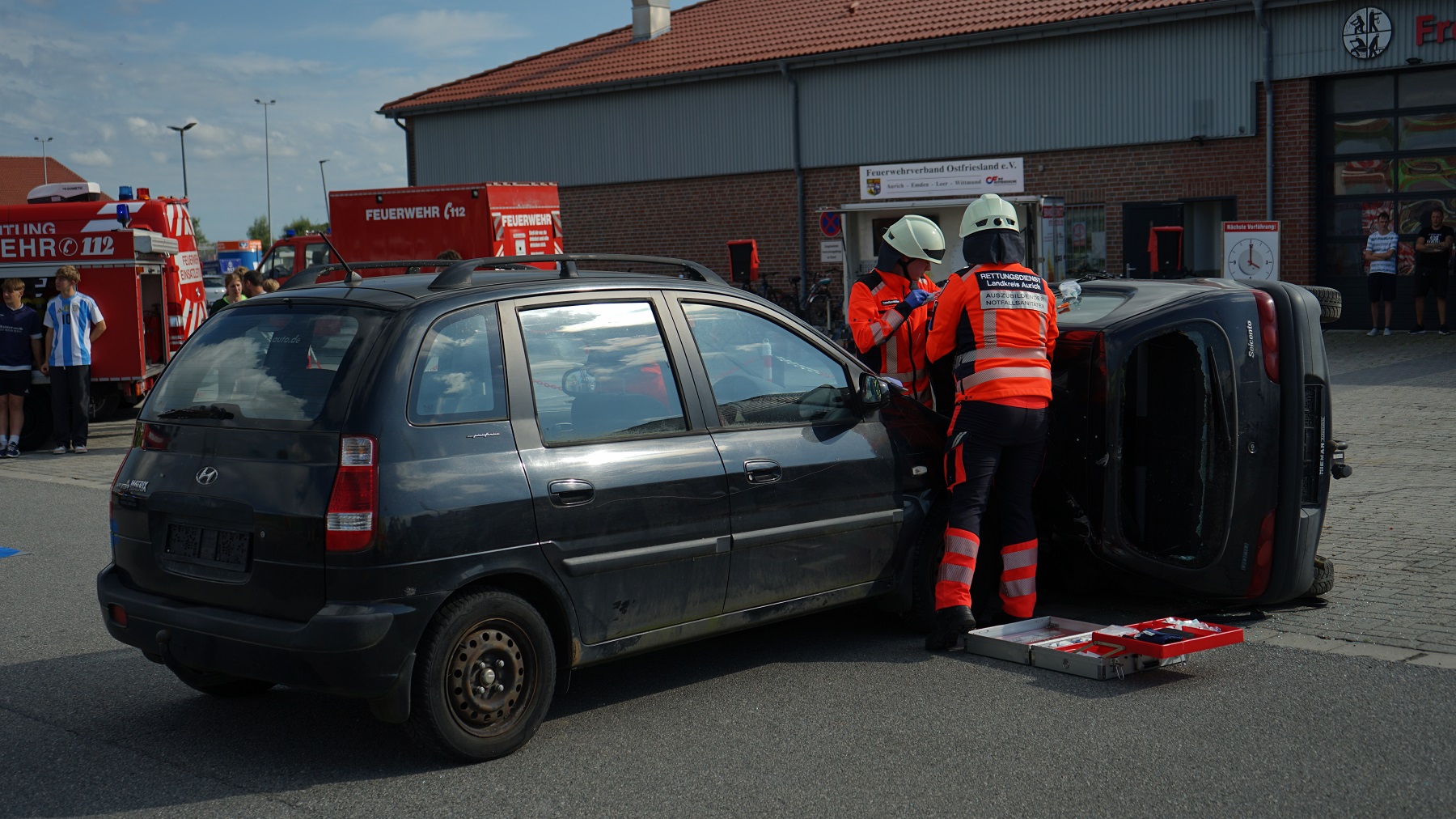 Zudem präsentierte die Feuerwehr in enger Zusammenarbeit mit dem Rettungsdienst des Landkreises Aurich die Abarbeitung verschiedenster Einsatzübungen. Außerdem sind Fettbrände oder der Zerknall von Sprühdosen vorgeführt worden.