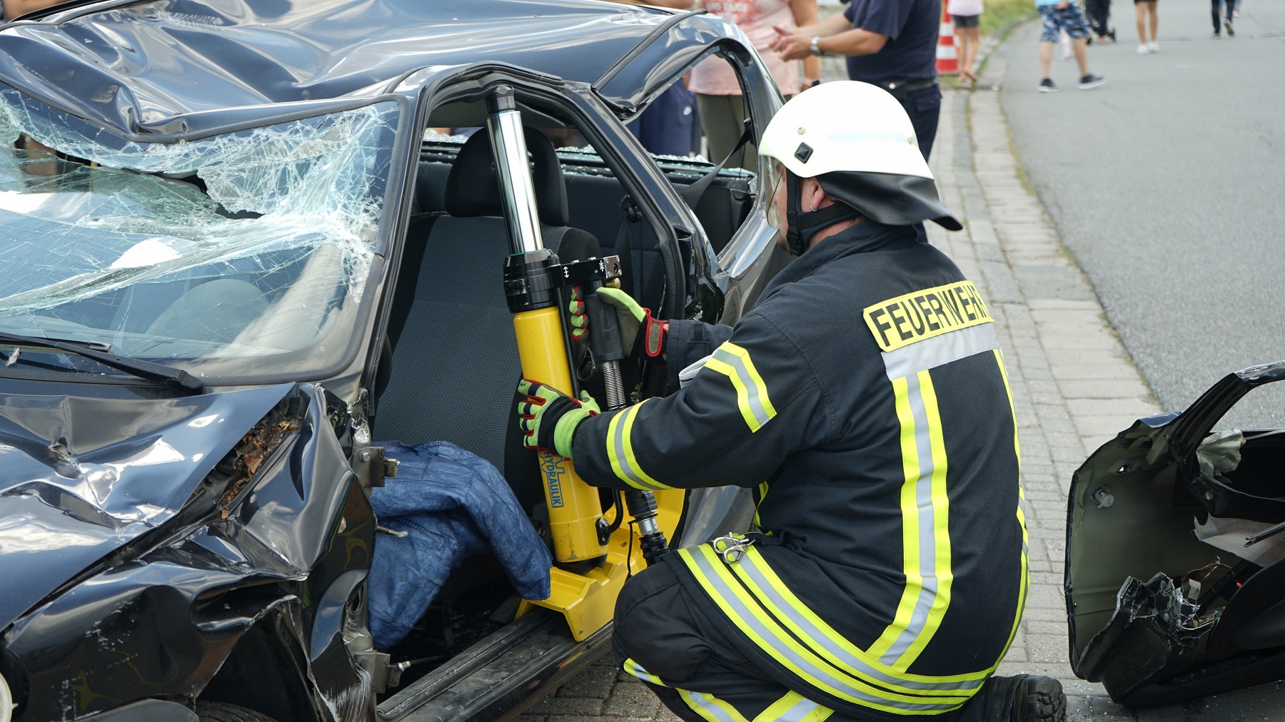 Für die Besucher gab es am Feuerwehrhaus der Ortsfeuerwehr einiges zu sehen und zu erleben. Gemäß dem Motto "Feuerwehr zum Anfassen" hatten Besucher die Möglichkeit, mit hydraulischem Rettungsgerät oder einem Strahlrohr zu arbeiten.