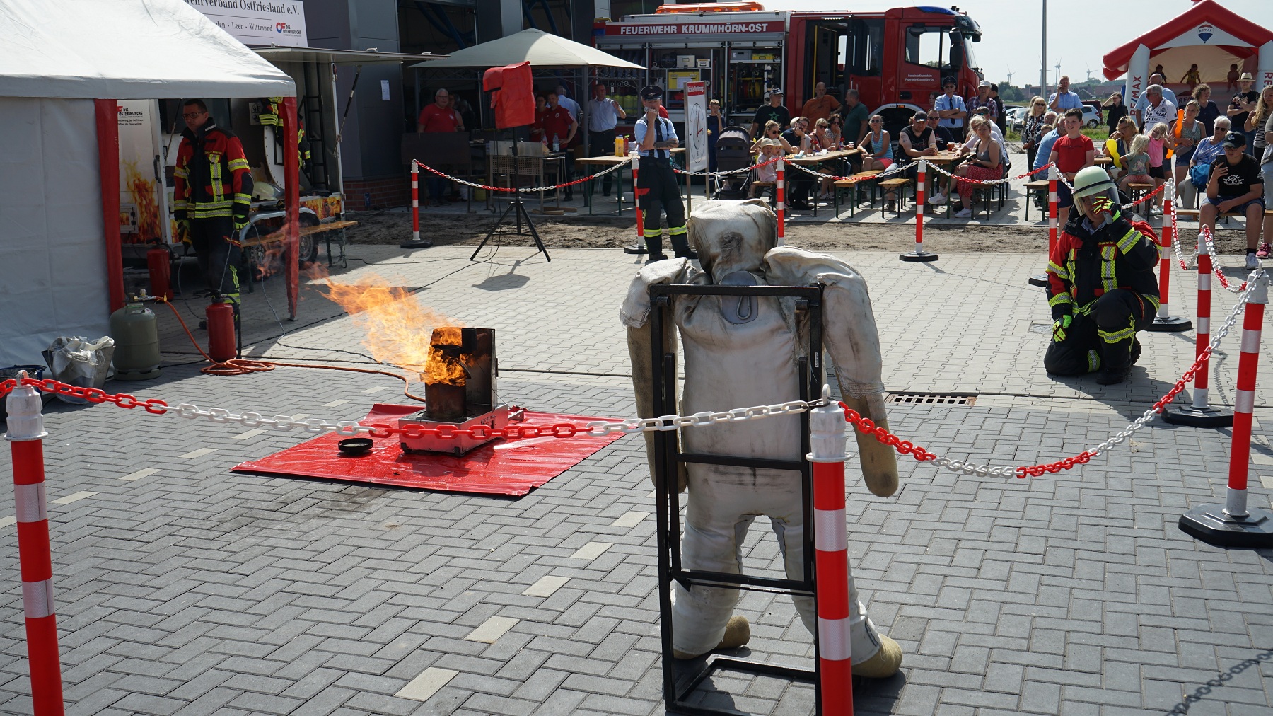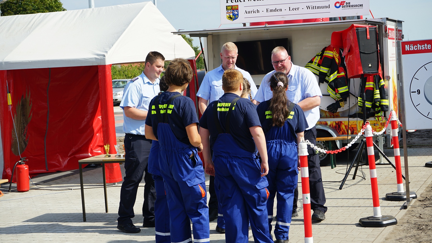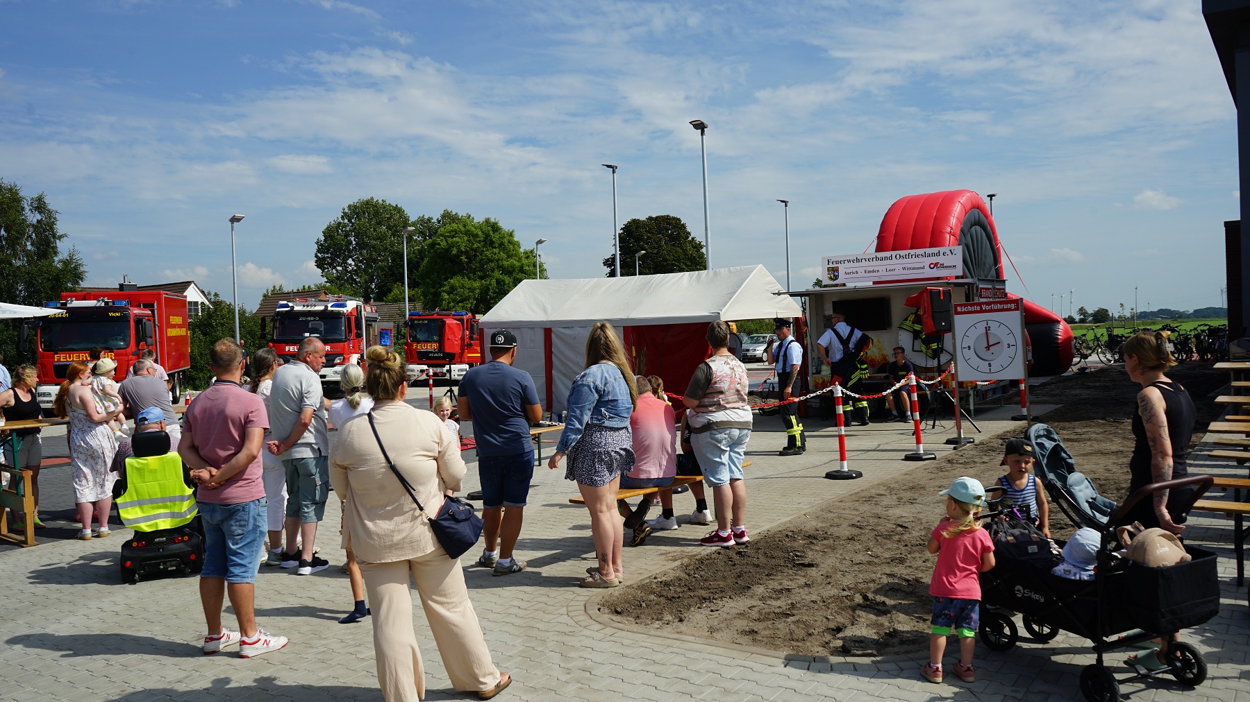 Die veranstaltende Ortsfeuerwehr Krummhörn-Ost stellte an diesem Tag ein abwechslungsreiches Rahmenprogramm auf die Beine. Dabei wurden unter anderem Einsatzfahrzeuge der Feuerwehr Krummhörn präsentiert und Vorführungen am Brandschutzinfomobil durchgeführt.