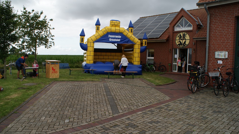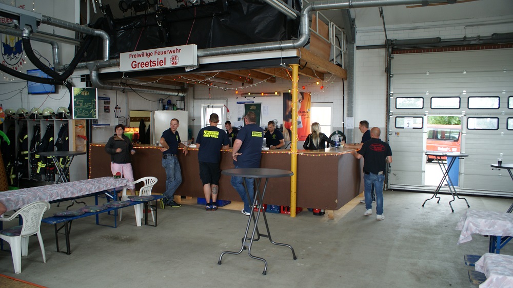 Dort gab es verschiedenste Attraktionen; Von der Hüpfburg für Kinder bis zum Schmieden für Jedermann. Für das leibliche Wohl sorgte die Freiwillige Feuerwehr Greetsiel. Am Abend gab es dort dann die Blaulichtparty und das große Höhenfeuerwerk.