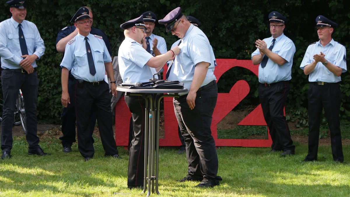 Jugendwart Markus Harms (Fw Eilsum-Grimersum und JF Grimersum) wurde für seine hervorragenden Dienste in der Jugendfeuerwehr geehrt. Stellvertretender Gemeindejugendfeuerwehrwart und Jugendwart Markus Hillers (Fw Manslagt-Pilsum und JF Hamswehrum) wurde ebenfalls für sein hervorragendes Engagement und seine Dienste in der Jugendfeuerwehr geehrt. Beide bekamen von Stephan Christel das Ehrenzeichen der Niedersächsichen Jugendfeuerwehr verliehen.