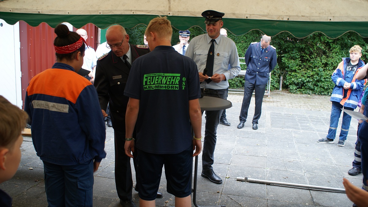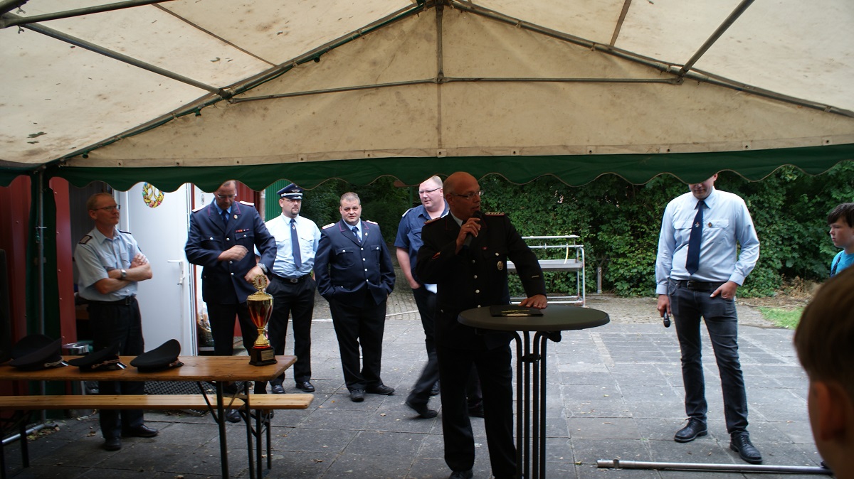 Am Sonntagvormittag fand dann ein gemeinsames Frühstück statt. Die geplanten Spielestationen fanden nicht statt. Kurze Zeit später fand dann die Siegerehrung der Spiele mit der Schließung des Zeltlagers statt. Gemeindejugendfeuerwehrwart Richard Hieronimus bedankte sich nochmals bei allen Helfern, Ausrichtern (Fw Eilsum-Grimersum und Fw Jennelt-Uttum) sowie dem angerückten Versorgungszug aus Middels. Ortsbrandmeister der Feuerwehr Eilsum-Grimersum, Markus Schink, bedankte sich ebenfalls bei den Helfern und sprach die Thematik vom Vorabend an. Stellv. Gemeindebrandmeister Reiner Willms brachte den Jugendlichen seine Wertschätzung seitens Gemeindefeuerwehr herüber. Stellv. Gemeindejugendfeuerwehrwart Markus Hillers begann dann mit der Siegerehrung der Jugendfeuerwehren. Danach folgten die Schlussworte zum diesjährigen Gemeindezeltlager.