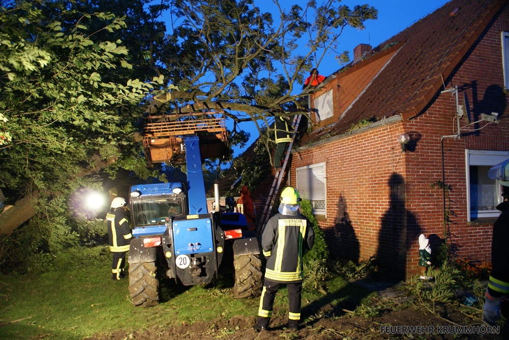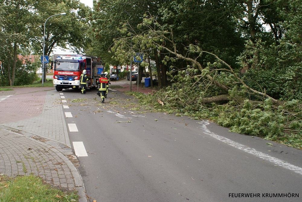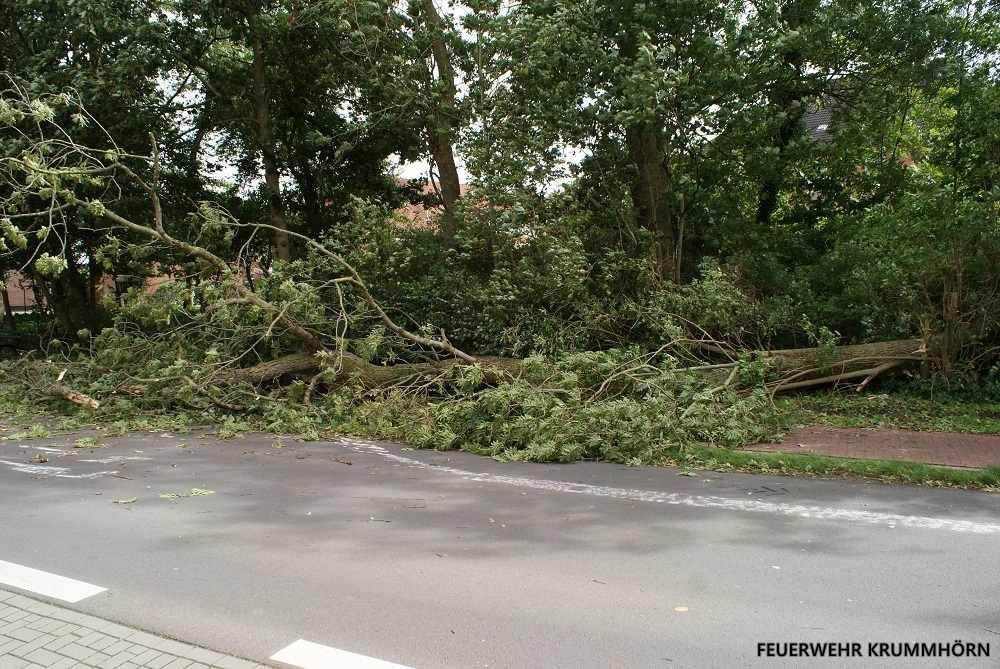 In der Gemeinde Krummhörn wurden insgesamt 20 Einsätze abgearbeitet. Die Einsatzkräfte waren bis in den Abend mit den Sturmschäden beschäftigt. Neben der Feuerwehr war auch die Polizei sowie der Bauhof im Einsatz.
