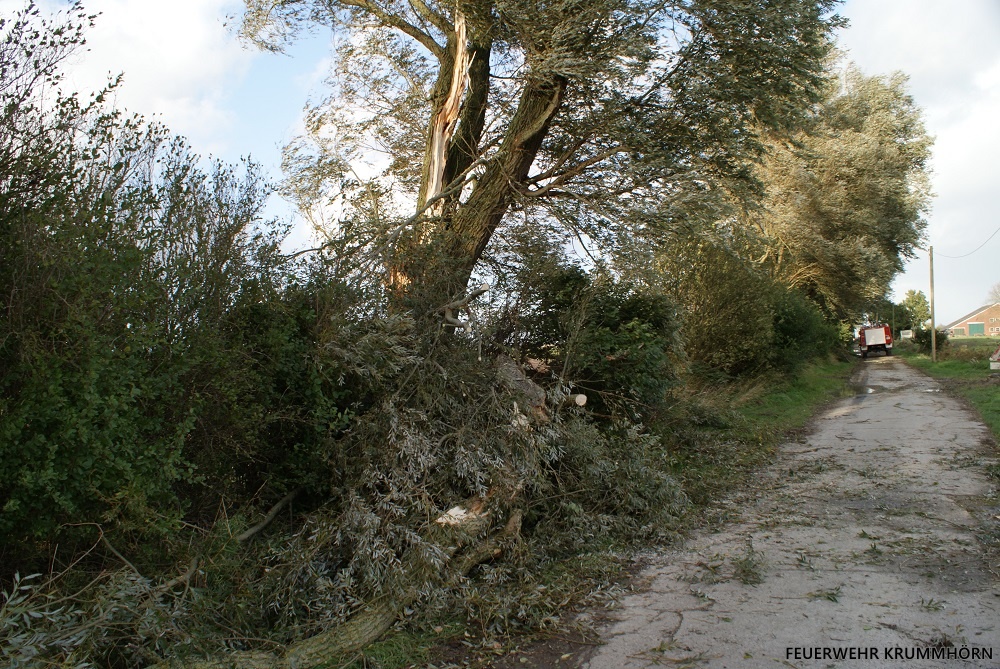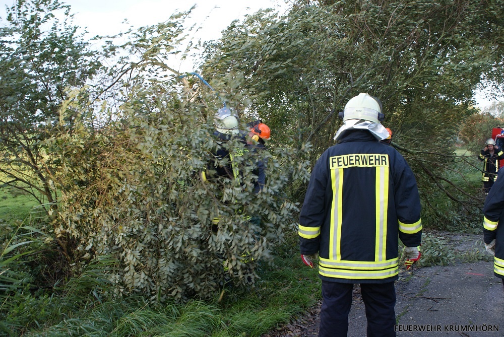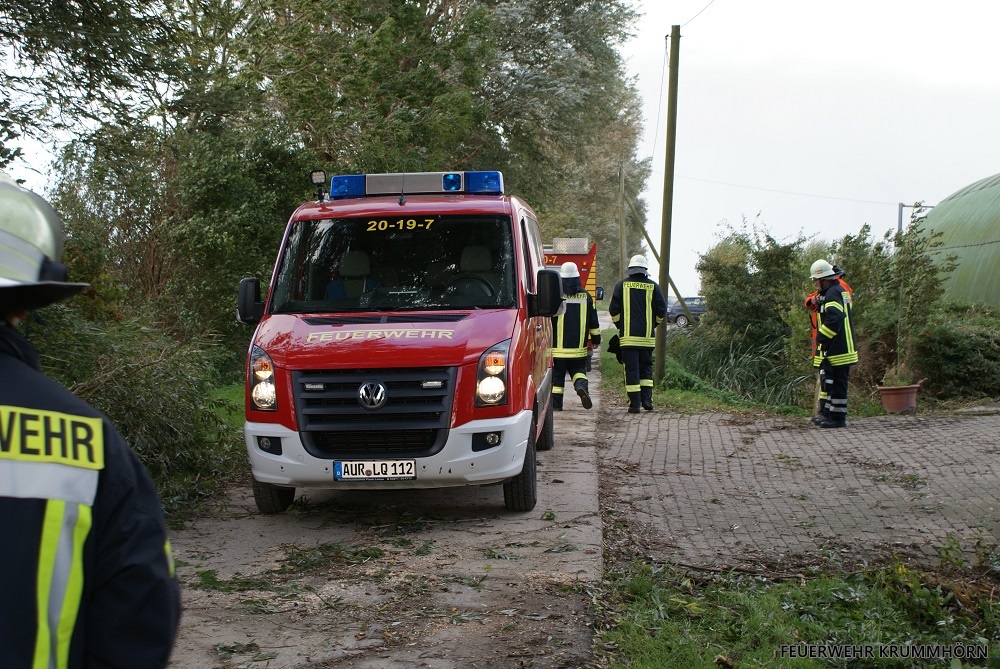 Der Sturm Xavier hielt einige Krummhörner Feuerwehren in Atem. Insgesamt kam es zu acht unwetterbedingten Einsätzen im Gemeindegebiet.