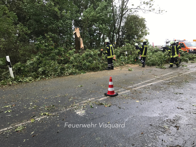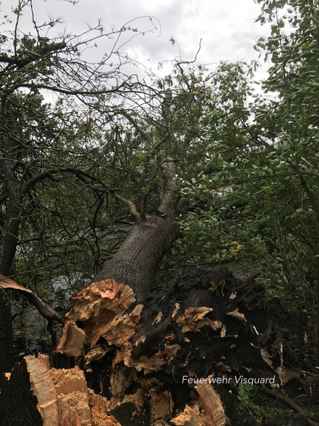Am Morgen alarmierte die Kooperative Regionalleitstelle Ostfriesland die Freiwillige Feuerwehr Canum - Freepsum um 11:40 Uhr zu einem Sturmschaden in die Dimtstraße in Freepsum. Dort beseitigte die Ortsfeuerwehr einen Baum, welcher auf eine Straße gestürzt war. Zu einem weiteren Sturmschaden wurde um kurz nach zwölf die Ortsfeuerwehr Visquard alarmiert. Ein Baum stürzte und beschädigte dabei einen Telefonmast. Auch dort beseitigte die Feuerwehr den Baum. Kurze Zeit später kam es zu einem Einsatz für die Freiwillige Feuerwehr Groothusen - Hamswehrum in der Meinhardistraße in Groothusen. Mehrere Äste lagen auf der Straße, welche kurzerhand von den Einsatzkräften der Ortsfeuerwehr beseitigt wurden.