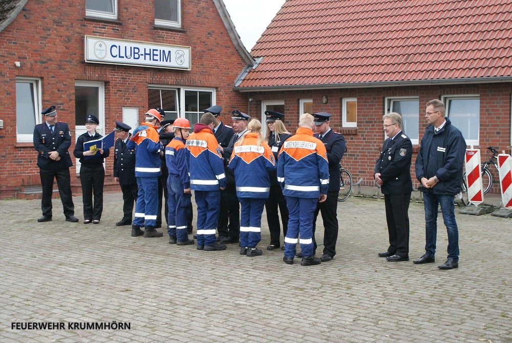 Die Kreisjugendfeuerwehrführung begrüßte alle Jugendfeuerwehrmitglieder sowie alle Führungskräfte der Kreis- und Gemeindefeuerwehr. Seitens der Gemeinde Krummhörn nahmen der stellvertretende Bürgermeister Reiner Willms und der Krummhörner Gemeindebrandmeister Joachim Harberts an dieser Veranstaltung teil.