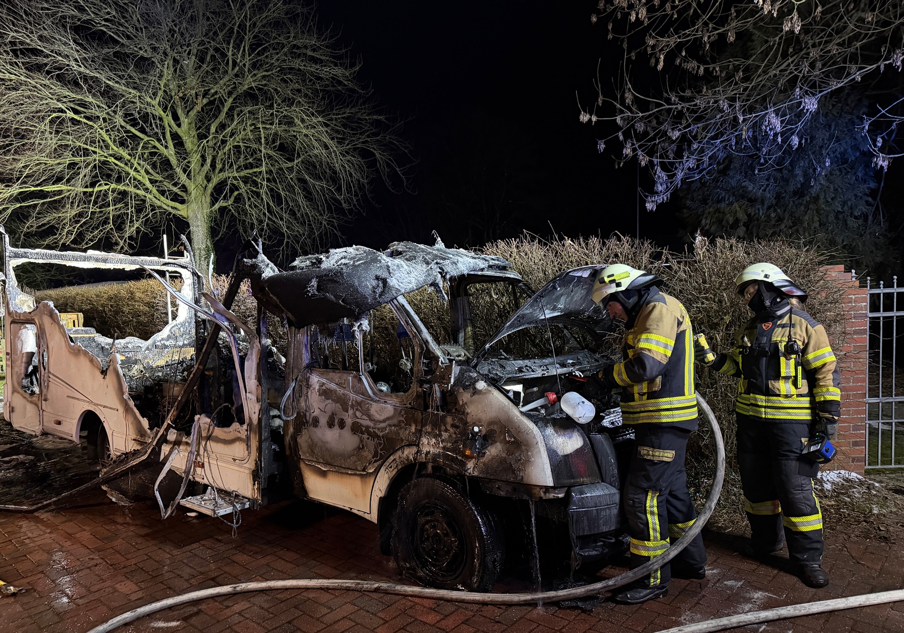In der Nacht zu Sonntag ist im Poldertunweg in Visquard ein Wohnmobil in Brand geraten. Die Feuerwehr wurde um 01:35 Uhr alarmiert.