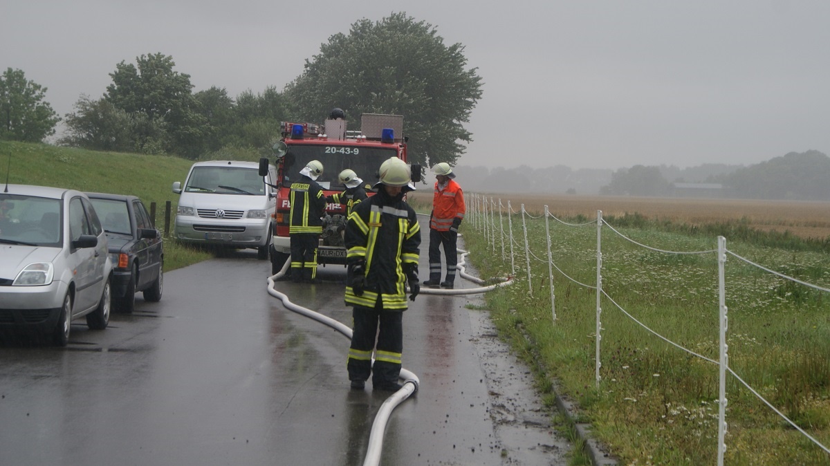 Am Samstagmorgen um 08:55 Uhr wurden die Feuerwehren Campen - Upleward, Loquard - Rysum und der in Pewsum stationierte Einsatzleitwagen mit dem Stichwort "F_Betriebsgebäude_Y" in die Straße "Campingweg" in Loquard alarmiert. Nach dem eintreffen des Gemeindebrandmeisters wurde die Lage erkundet und die Ortsfeuerwehr Pewsum - Woltzeten nachalarmiert.