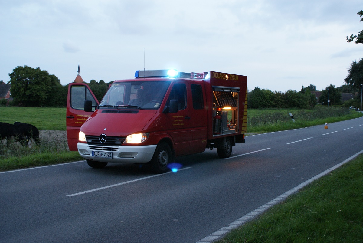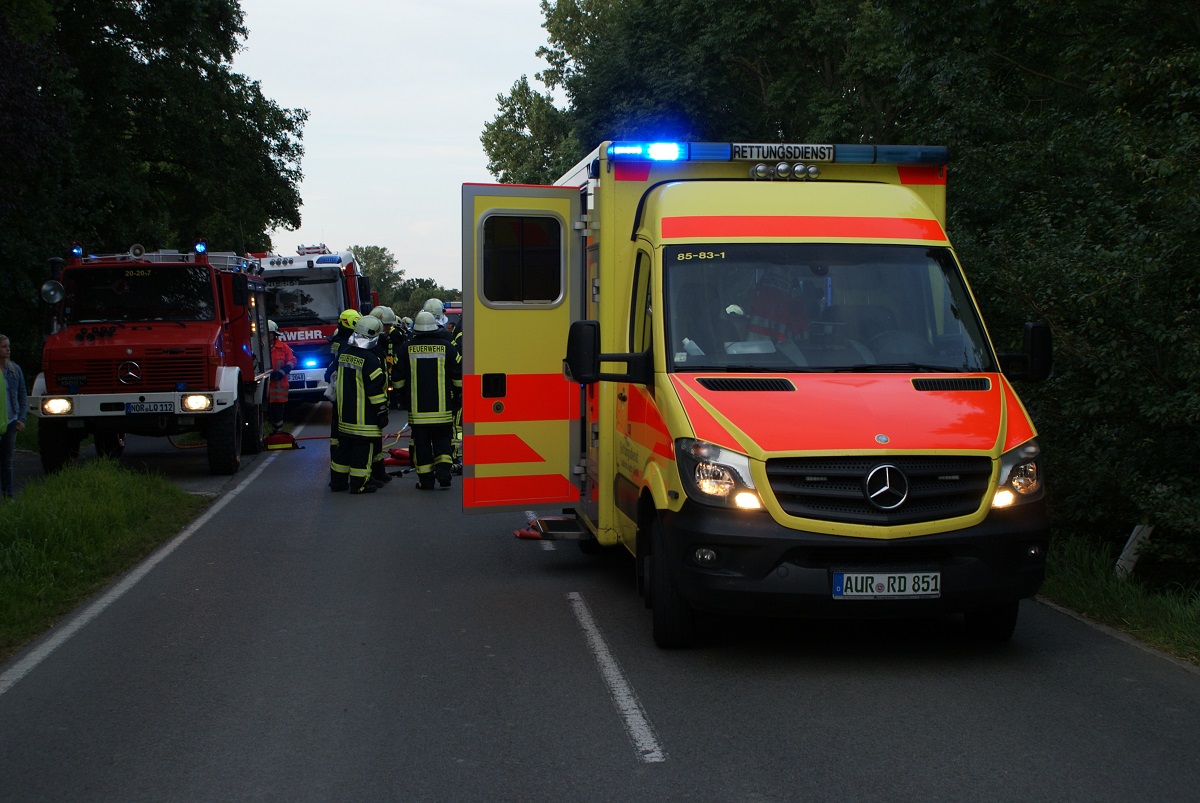 An der Loquarder Landstraße ist es am Donnerstagabend zu einem schweren Verkehrsunfall gekommen. Um 19:52 Uhr wurden die Freiwilligen Feuerwehren Loquard - Rysum, Campen - Upleward und Pewsum - Woltzeten mit dem Stichwort Verkehrsunfall mit eingeklemmter Person alarmiert.