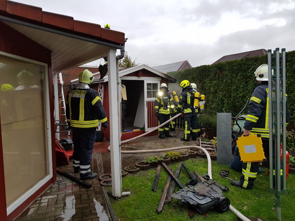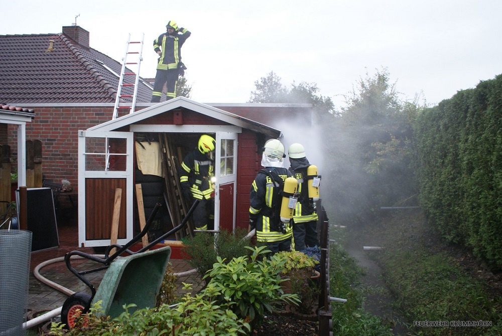 Am Samstagabend alarmierte die Kooperative Regionalleitstelle Ostfriesland um 18:21 Uhr die Freiwillige Feuerwehr Pewsum - Woltzeten sowie die Freiwillige Feuerwehr Canum - Freepsum mit dem Stichwort "Schuppenbrand" in die Woquarder Reihe in Pewsum.