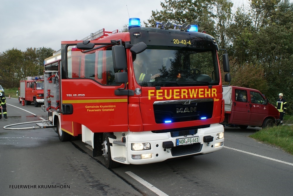 Während der Einsatzzeit musste die Greetsieler Straße für einige Zeit voll gesperrt werden. Einige Fahrzeugführer von Kraftfahrzeugen sowie Krafträdern zeigten dafür leider kein Verständnis und behinderten das sichere Arbeiten der Feuerwehr, indem sie Absperrungen missachteten.