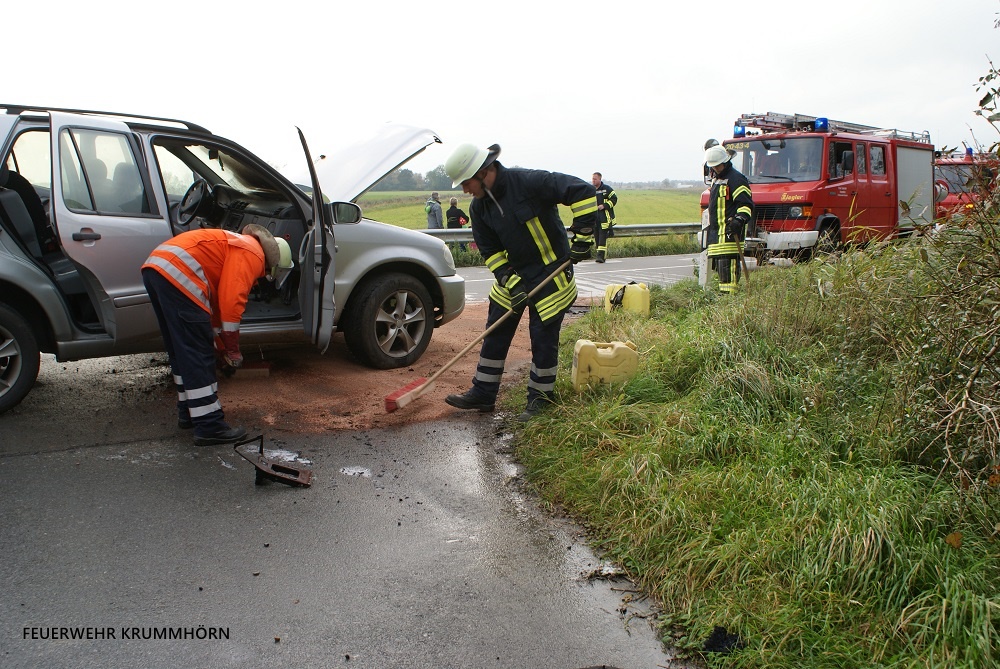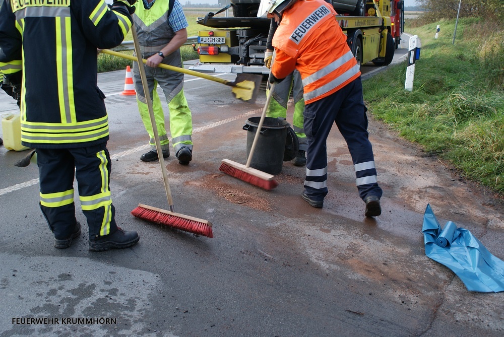Nach Abschluss der Löscharbeiten forderte man die Ortsfeuerwehr Manslagt - Pilsum nach, um ausgelaufene Betriebsstoffe abzustreuen und aufzunehmen. Ein Abschleppunternehmen schleppte den PKW ab.
