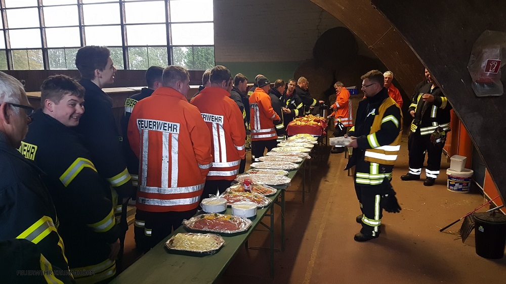 Nach rund 2 Stunden konnten die 72 Einsatzkräfte der Feuerwehr und des Deutschen Roten Kreuzes, die mit 12 Fahrzeugen angerückt waren, die Einsatzübung beenden und zu einem gemeinsamen Frühstück übergehen.