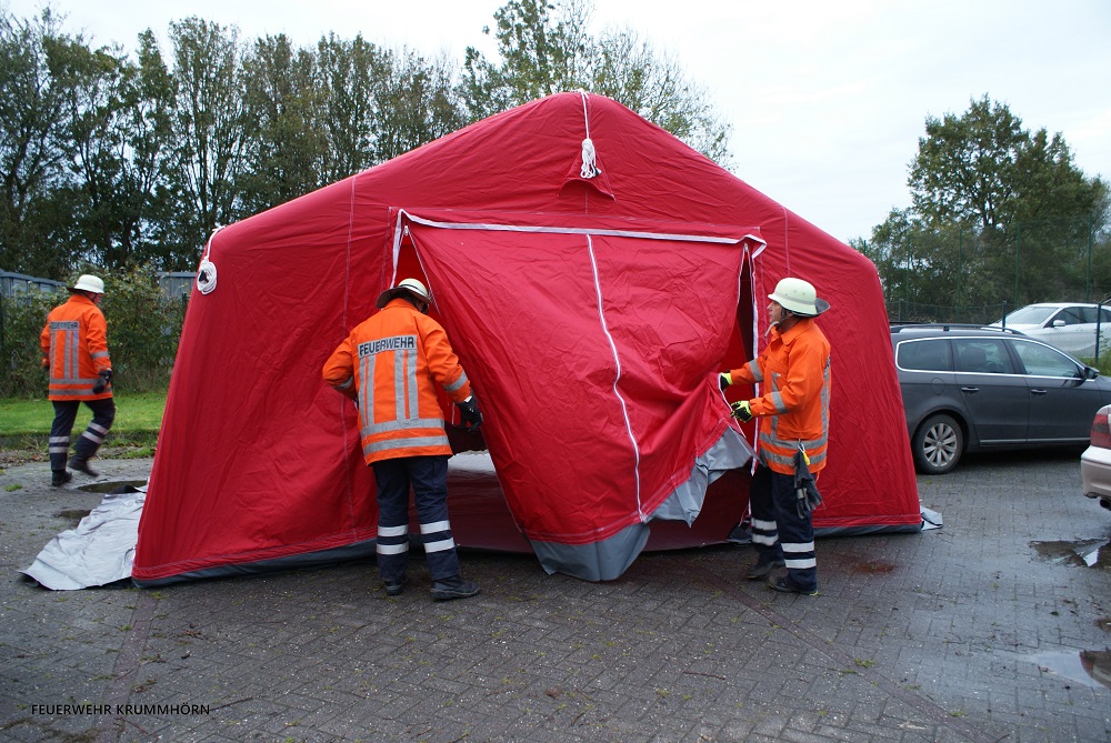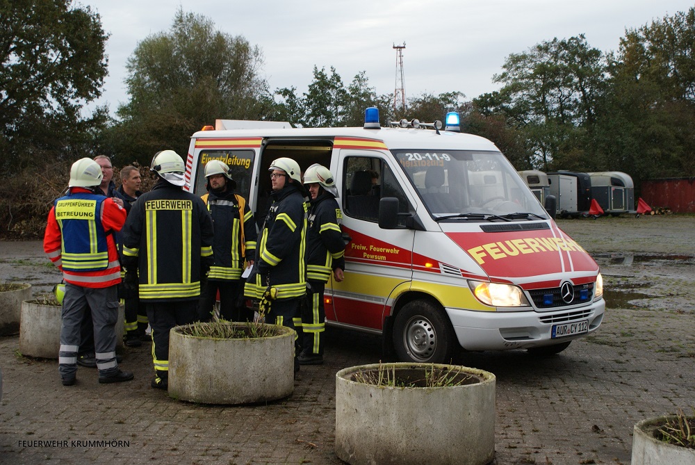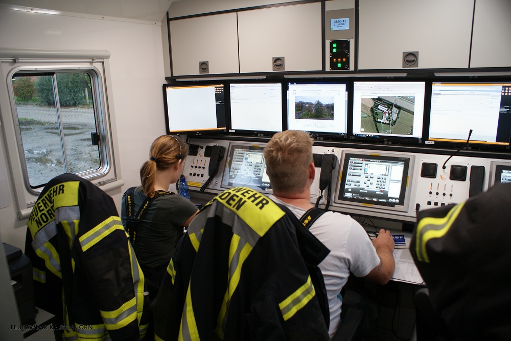 Nach dem Eintreffen des Einsatzleitwagen 2 aus Norden baute sich dieser auf. Die Einsatzkräfte des ELW1 aus Pewsum-Woltzeten zogen in den Einsatzleitwagen 2 um, um die Kräfte zu unterstützen. Beide Besatzungen der Einsatzleitwagen arbeiteten Hand in Hand. Im Einsatzleitwagen 2 fand nach dem Übungsende die Abschlussbesprechung der Gruppenführer und Abschnittsleiter statt.