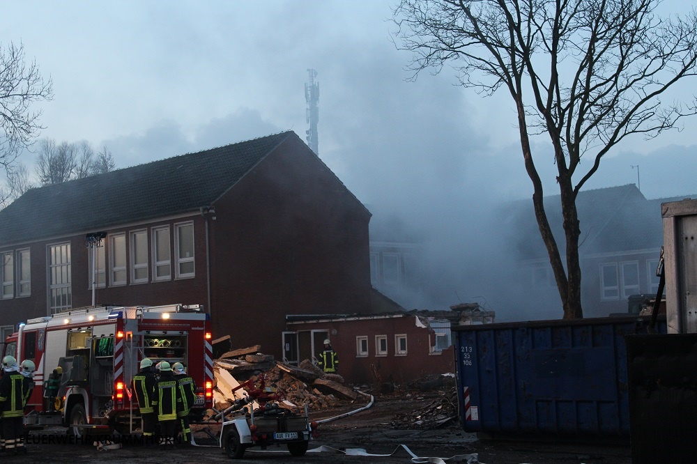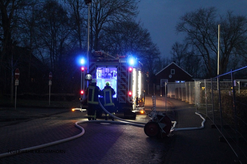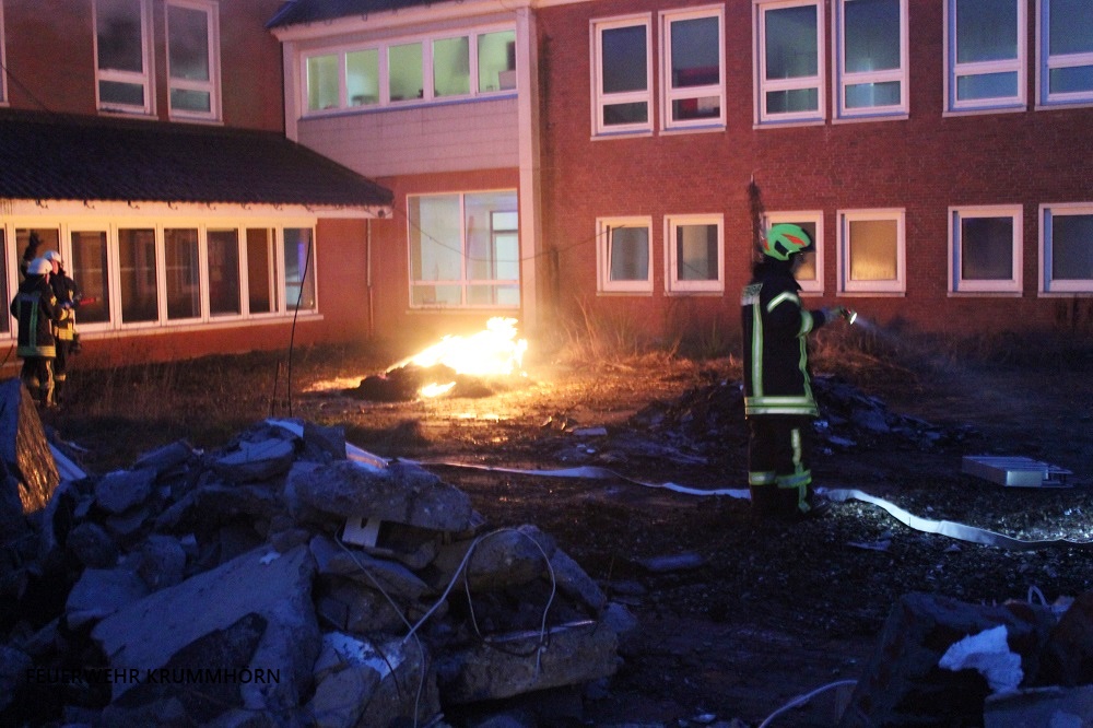 "Feuer im Innenhof einer Schule" - So lautete am frühen Samstagmorgen, den 20.01.2018 die Einsatzmeldung für die Feuerwehren Pewsum - Woltzeten, Canum - Freepsum und Groothusen - Hamswehrum.