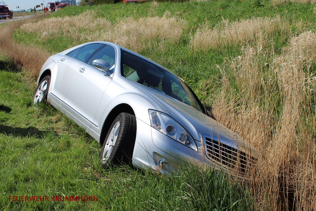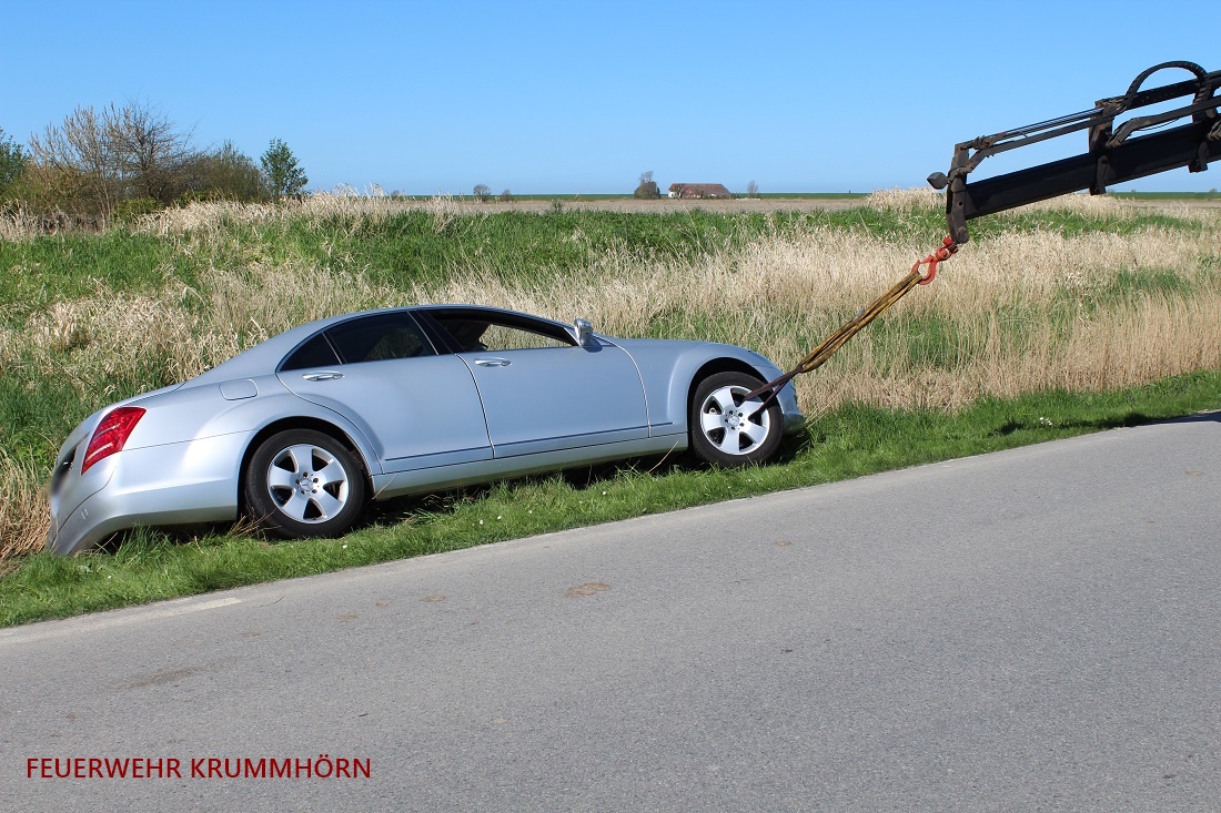 Die eingesetzten Feuerwehren, Krummhörn-Nord (Greetsiel), Krummhörn-Ost, Feuerwehr Pewsum-Woltzeten sowie die ELW-Gruppe, rückten zum Einsatzort aus. Vor Ort lag ein Pkw seitlich in einem Straßengraben. Der Fahrer des PKW befand sich noch im Fahrzeug.