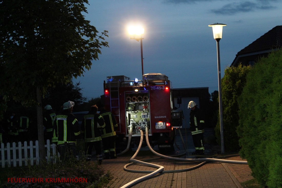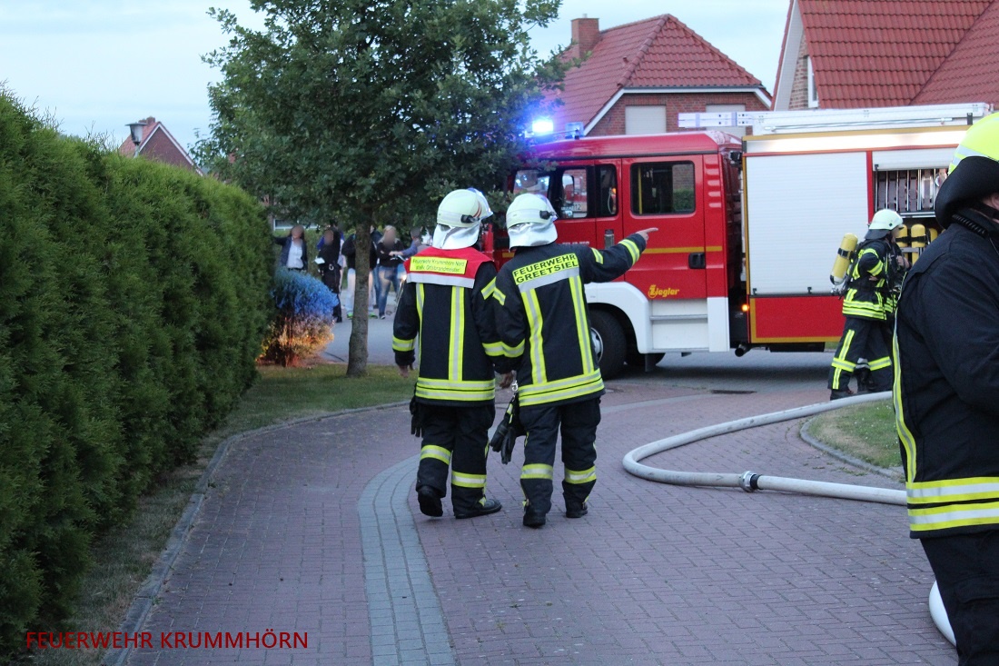 Am Mittwochabend, 13.06.2018, wurden die Feuerwehren Krummhörn Ost, Krummhörn-Nord, Visquard sowie die ELW-Gruppe gegen 21:35 Uhr zu einem Zimmerbrand nach Grimersum in die Straße Ant Greetmer Deep alarmiert. Beim Eintreffen der ersten Einsatzkräfte schlugen bereits Flammen aus dem Küchenfenster.