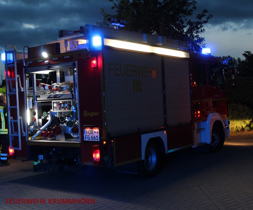 Neben den Feuerwehren, die mit rund 75 Einsatzkräften vor Ort waren, war auch die Polizei, der Energieversorger, der Bauhof der Gemeinde Krummhörn und der Rettungsdienst vor Ort.