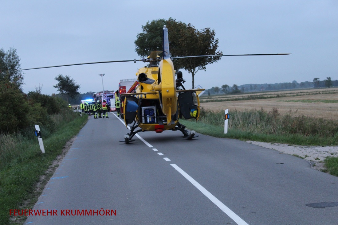Vorsorglich wurden hydraulische Rettungsgeräte bereit gelegt, diese wurden allerdings nicht mehr benötigt. Die Feuerwehr sperrte die Cirkwehrumer Straße und richtete einen Landeplatz für den Rettungshubschrauber her.