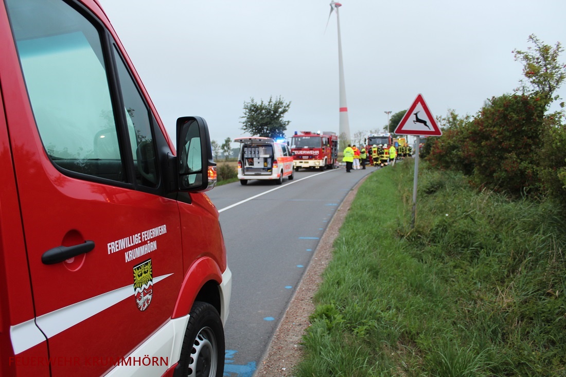 Am Dienstagmorgen ist es zu einem schweren Verkehrsunfall auf der Cirkwehrumer Straße zwischen Cirkwehrum und Uttum gekommen. Zwei PKW waren frontal zusammengestoßen. Daraufhin alarmierte die Leitstelle Ostfriesland die Feuerwehren Krummhörn-Ost und Pewsum-Woltzeten sowie den Rüstwagen der Feuerwehr Norden zu einem Verkehrsunfall mit eingeklemmter Person.