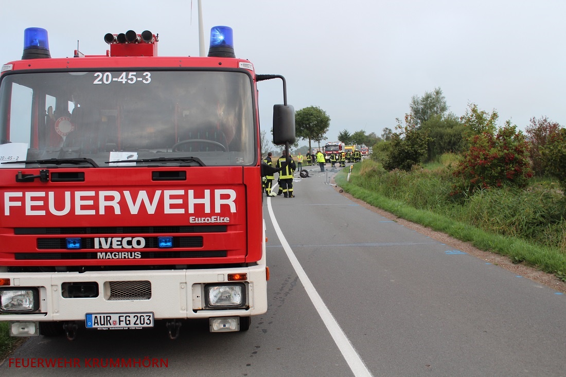 Die Feuerwehr Krummhörn war mit 60 Einsatzkräften und 8 Einsatzfahrzeugen vor Ort. Neben den Krummhörner Feuerwehren waren auch der Gemeindebrandmeister und der stellvertretende Gemeindebrandmeister der Gemeinde Hinte vor Ort sowie die Feuerwehr Norden mit dem Rüstwagen-Kran.